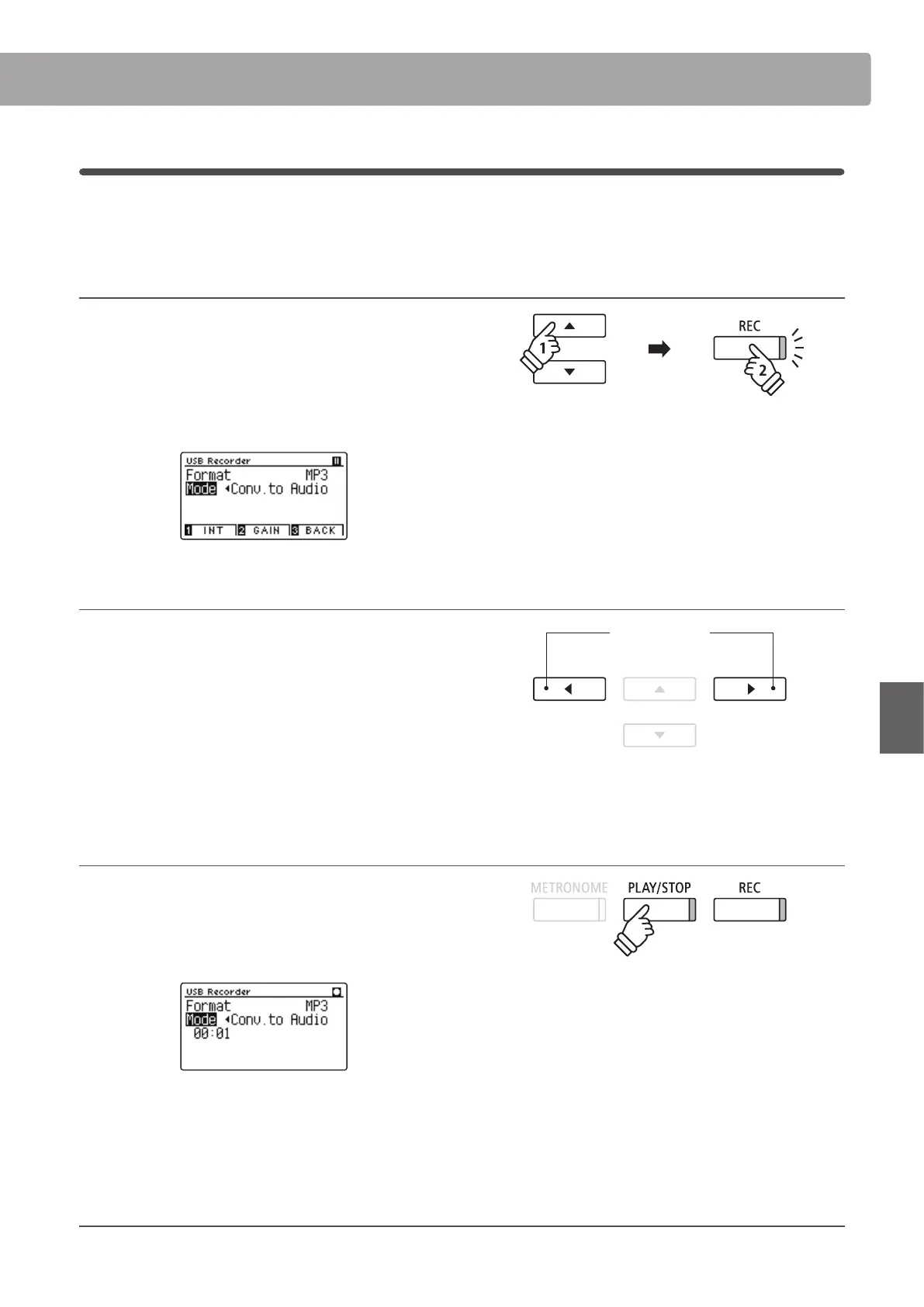 Please follow the ‘Recording an MP3/WAV audio le’ instructions on pages 56~57. from step 4.