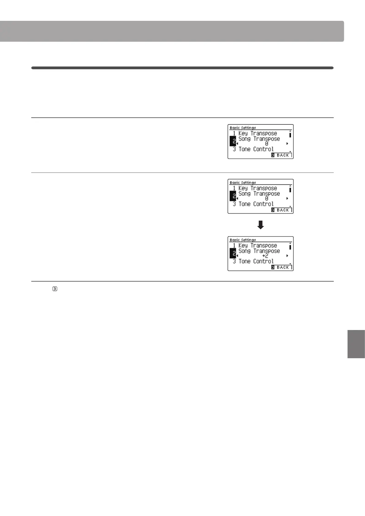 3. Exiting the Song Transpose setting