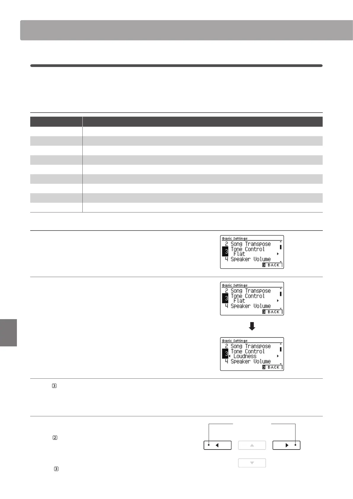 The Tone Control setting allows the overall sound character of the CN39 digital piano to be adjusted to provide