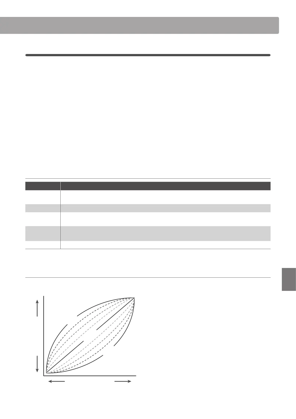 touch curve. Alternatively, if the keyboard feels too heavy, or fortissimo playing is too dicult to achieve, it may be