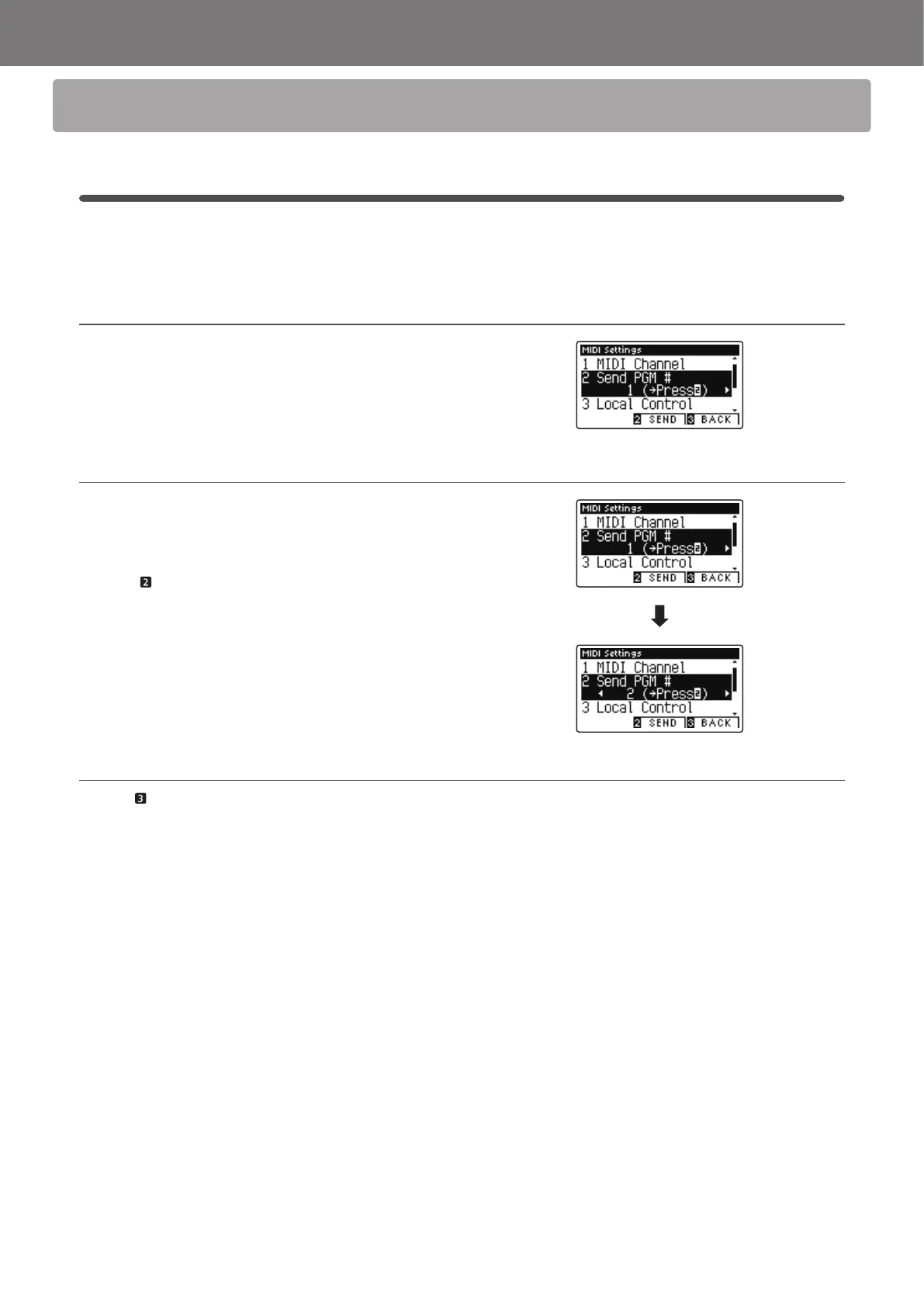 The Send Program Change Number function is used to send a Program Change Number (1-128) to the connected