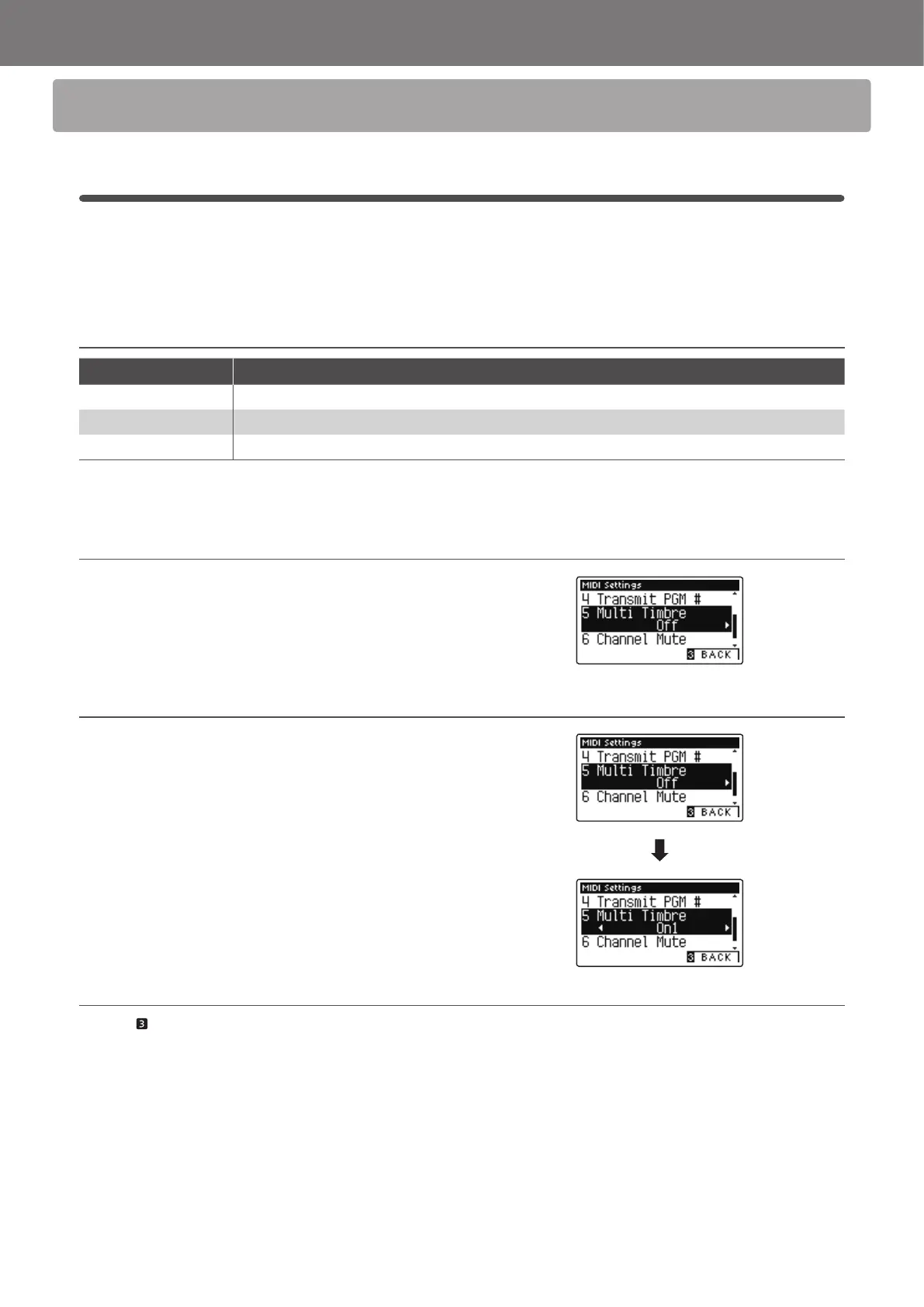 The Multi-timbral Mode setting determines whether or not the CS11/CS8 digital piano is able to receive MIDI