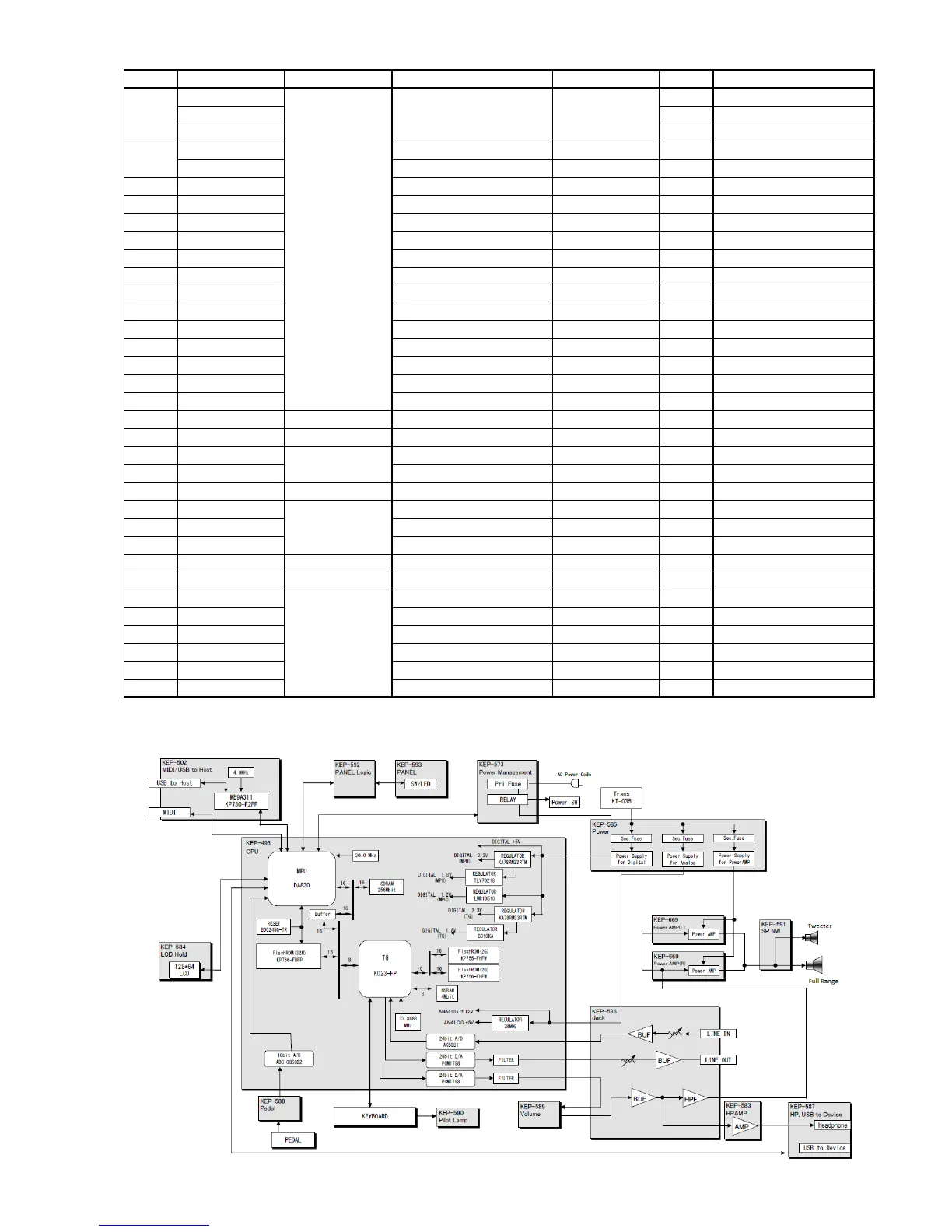 Kawai CS8 - Electrical Parts List; Block Diagram