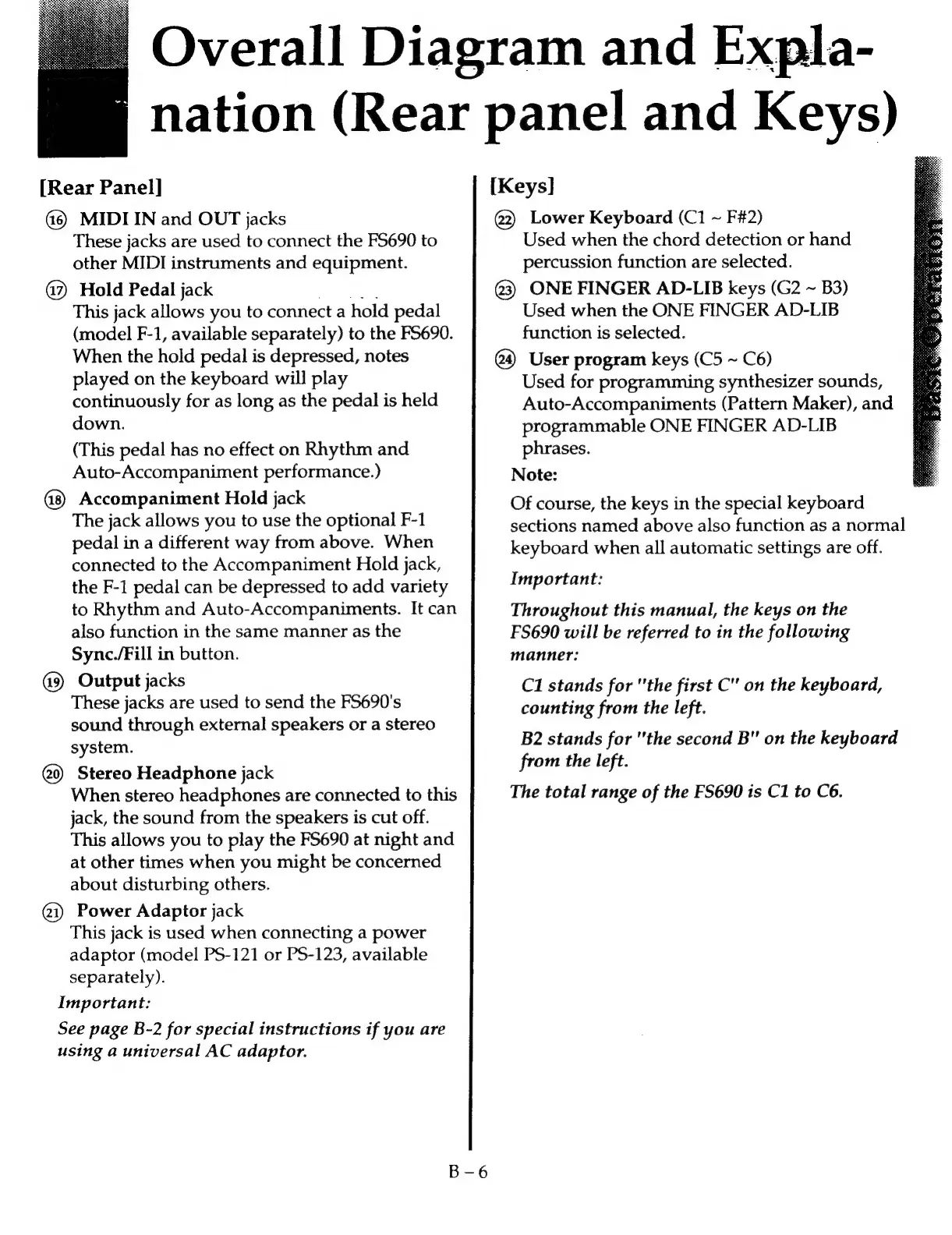 Kawai FS690 - (Rear Panel and Keys)