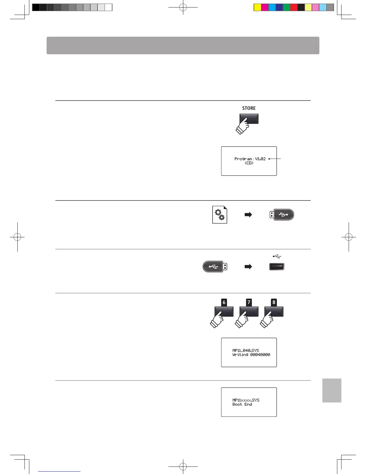 This page contains instructions for updating the system software of the MP11, when issued by Kawai.