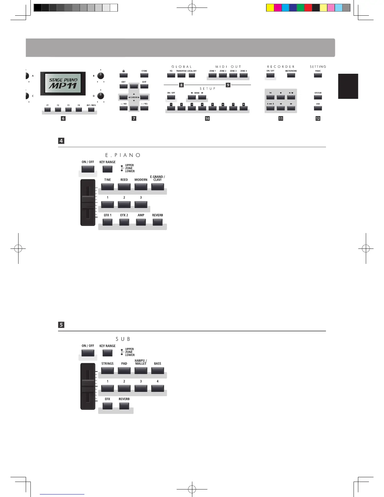 These LEDs indicate the key range to which the E.PIANO section