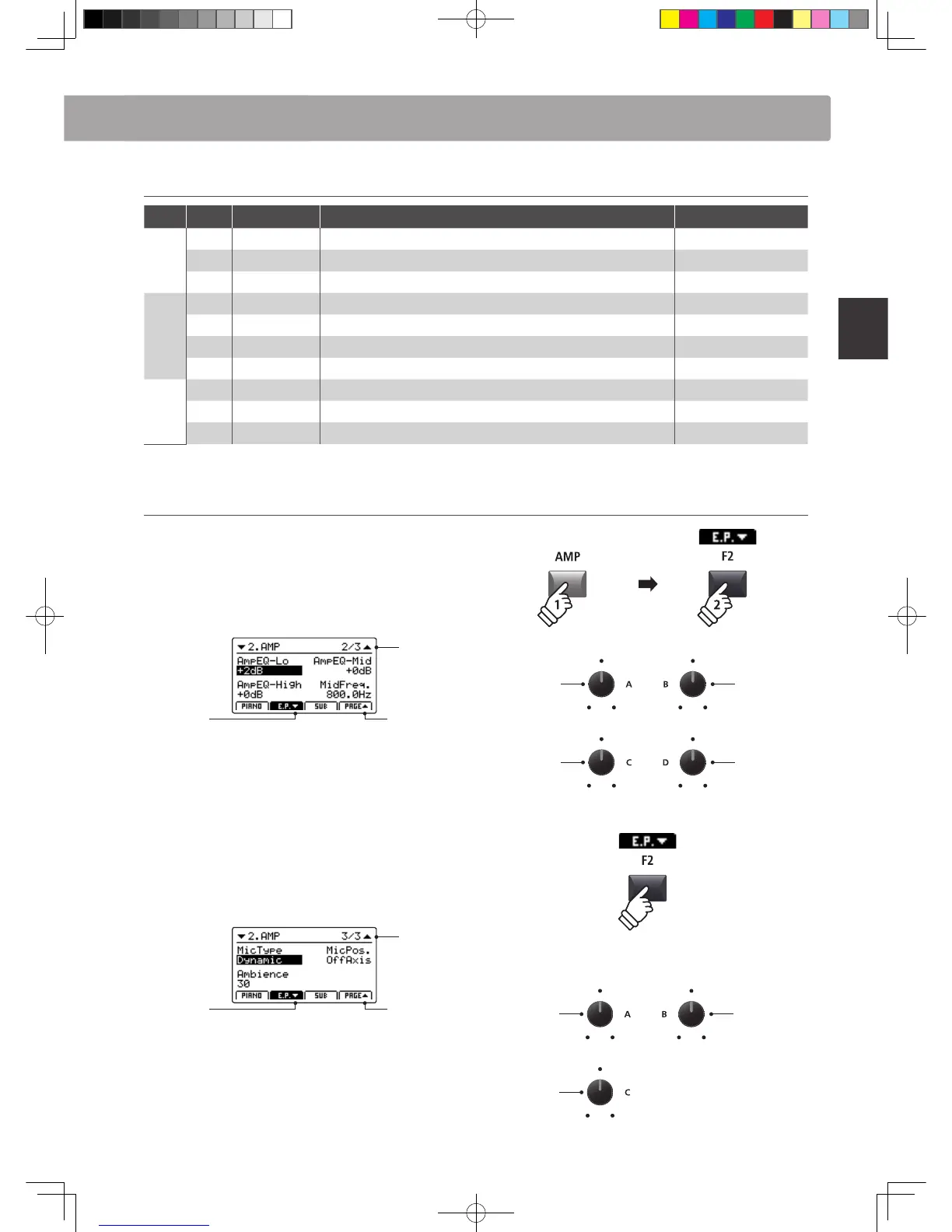 Press and hold the E.PIANO sound section’s AMP button, then