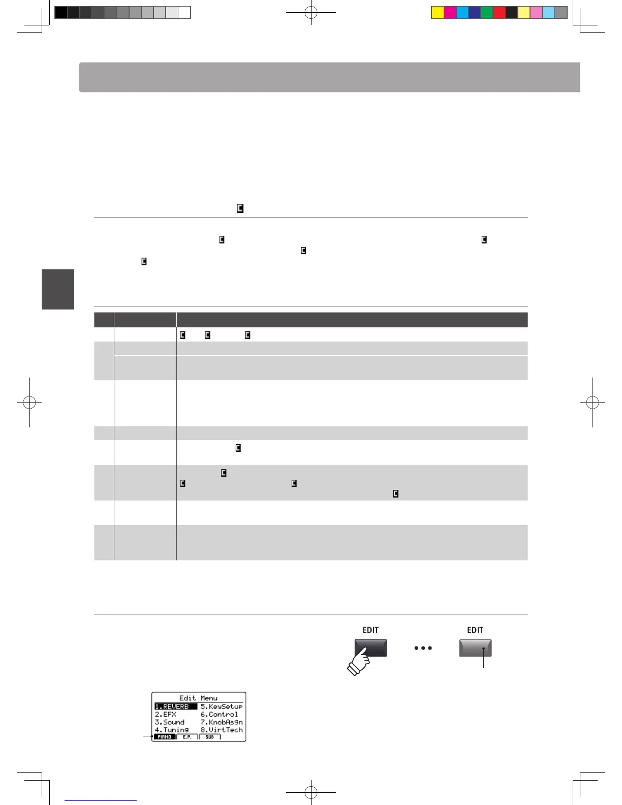 Overview of the EDIT Menu (PIANO, E.PIANO, SUB)