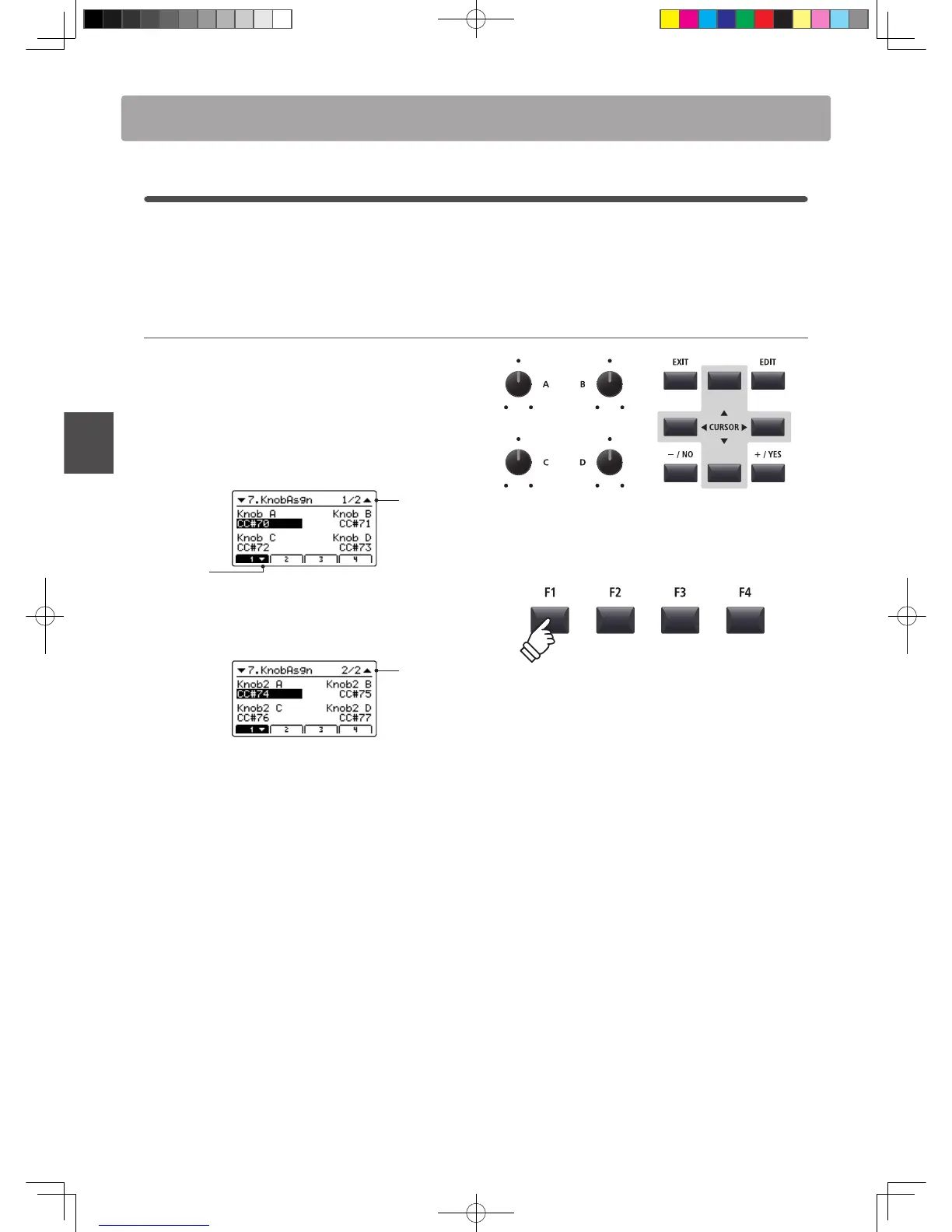 Turn the four control knobs (A, B, C, D) to specify which MIDI CC