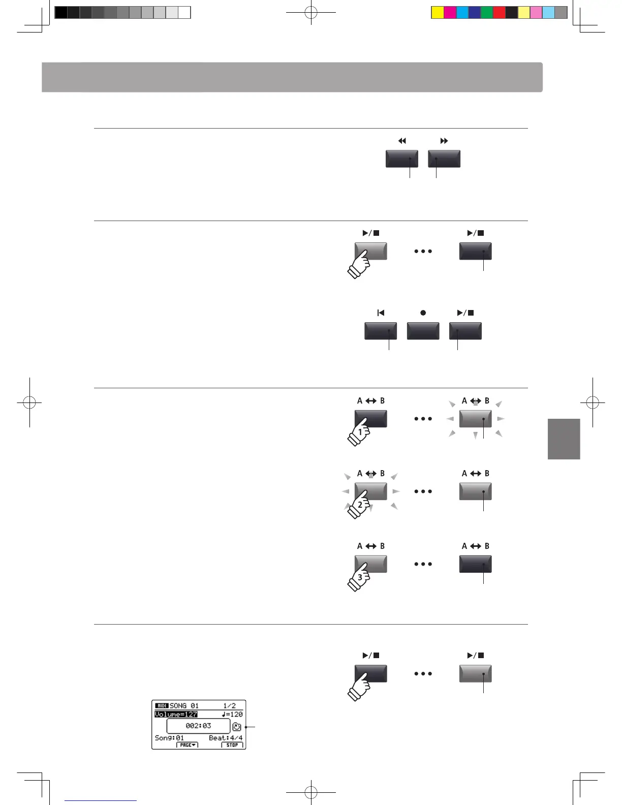 Chain Play mode allows all recorder songs stored in memory to be played continuously, in sequence.