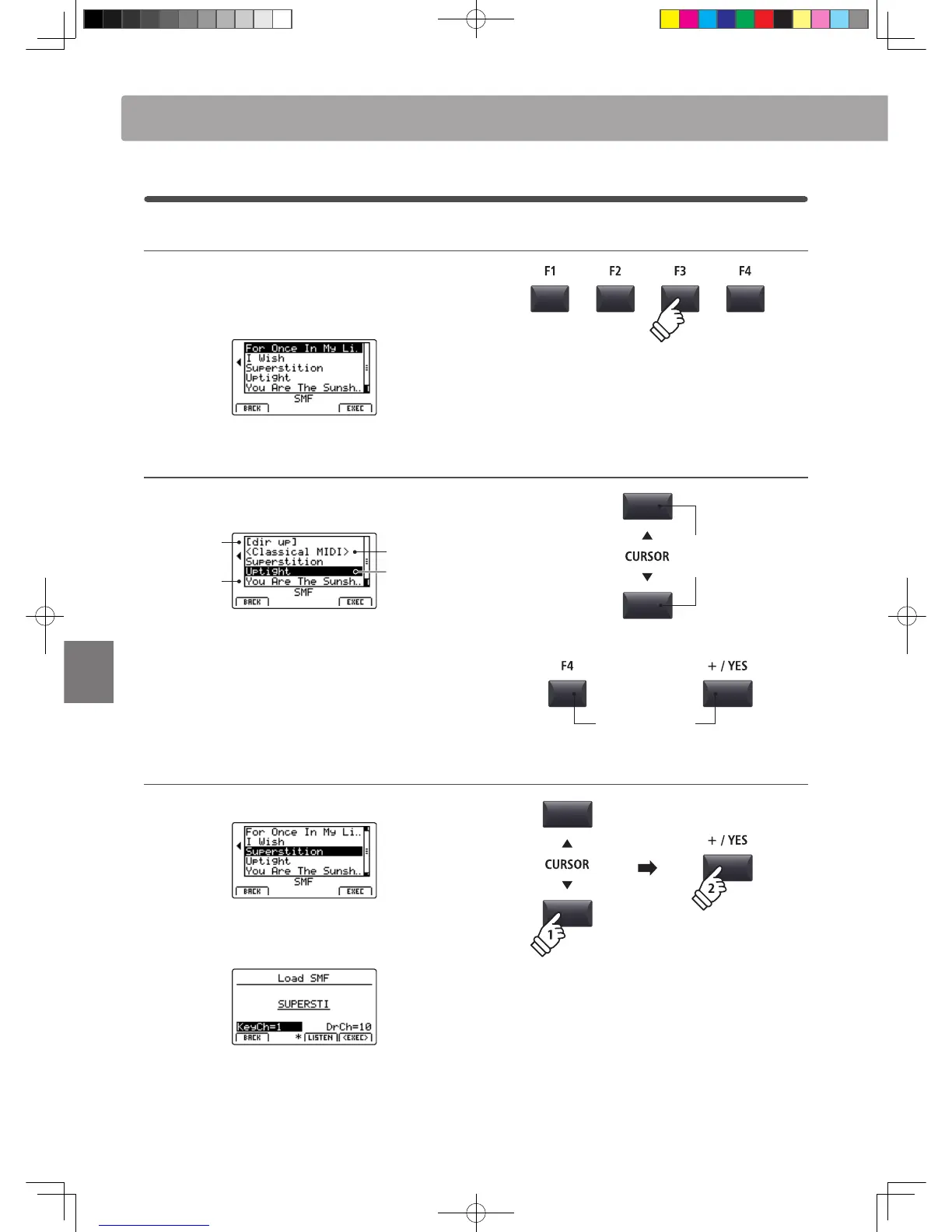 buttons to select the desired MIDI le.