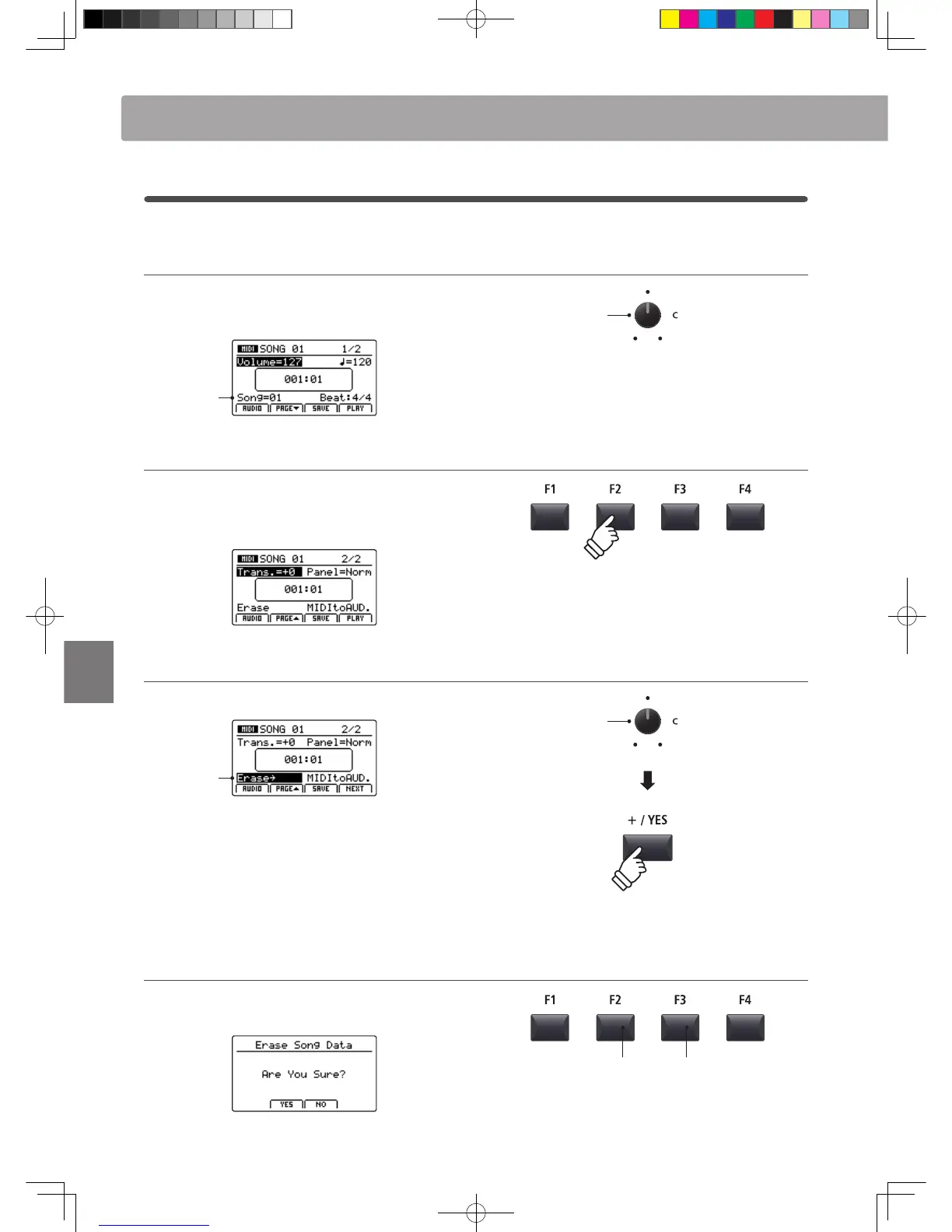 Press the F2 button (YES) to conrm the Erase Song operation,