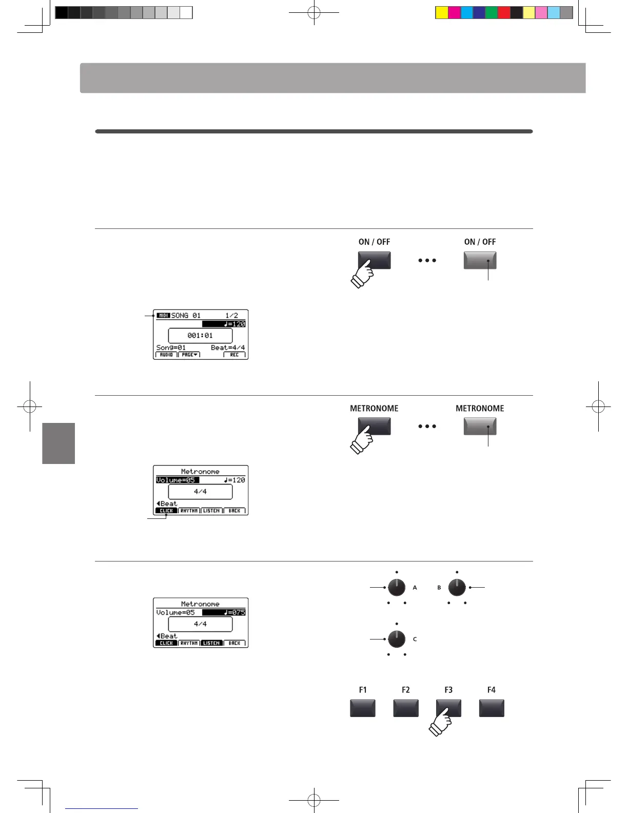 * The metronome tempo can be adjusted within the range of 30-300 bpm