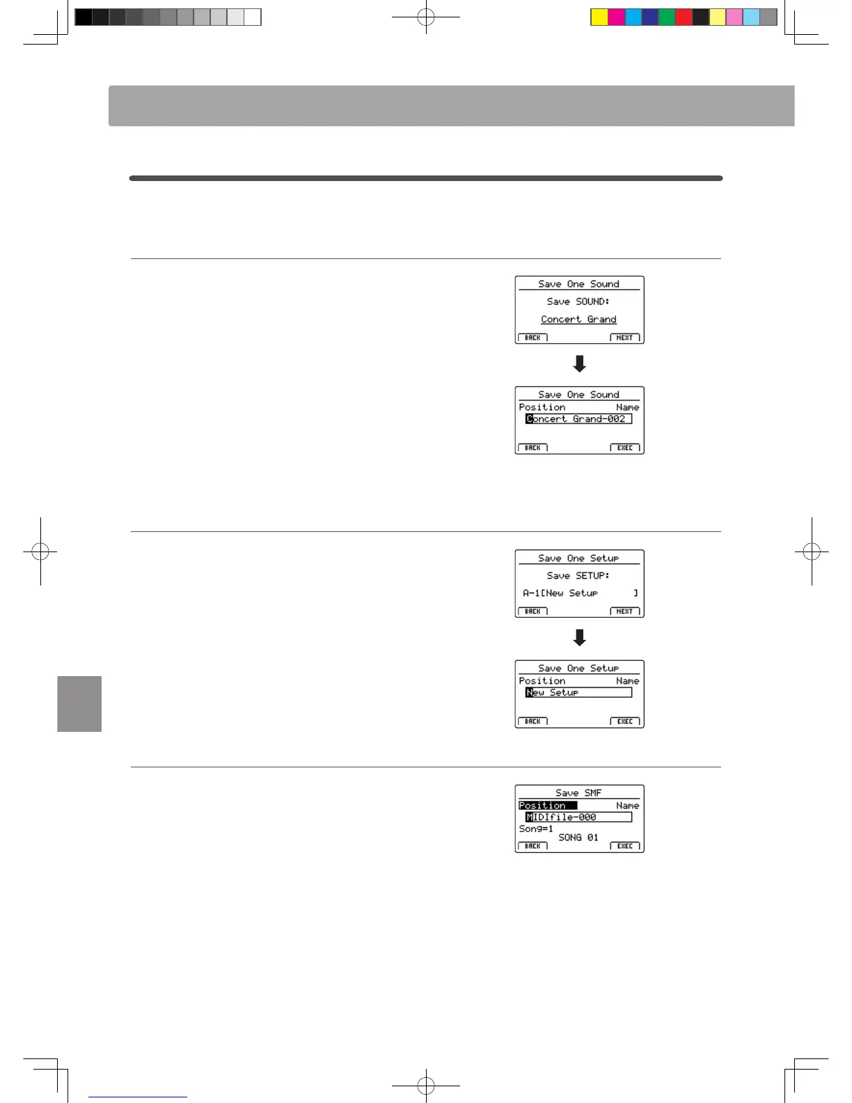 These functions allow data stored in the instrument’s internal memory to be saved to a USB memory device.