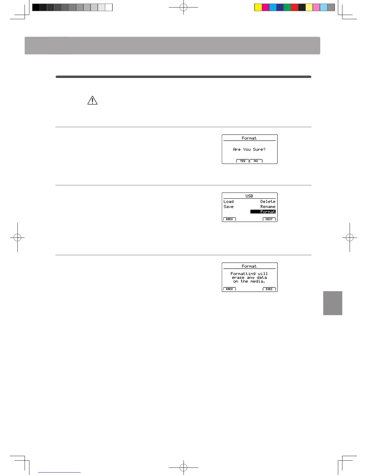 This function allows a USB memory device to be formatted, erasing all stored data.