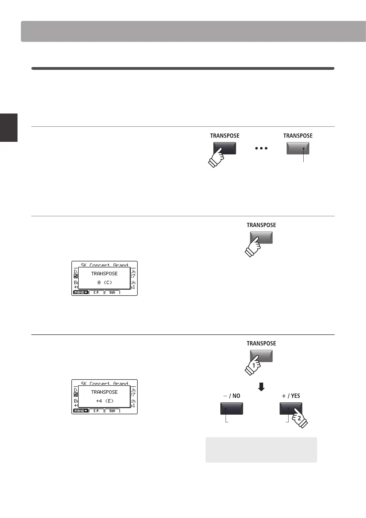 * To reset the transpose value to 0 (no transposition), press both the –/NO