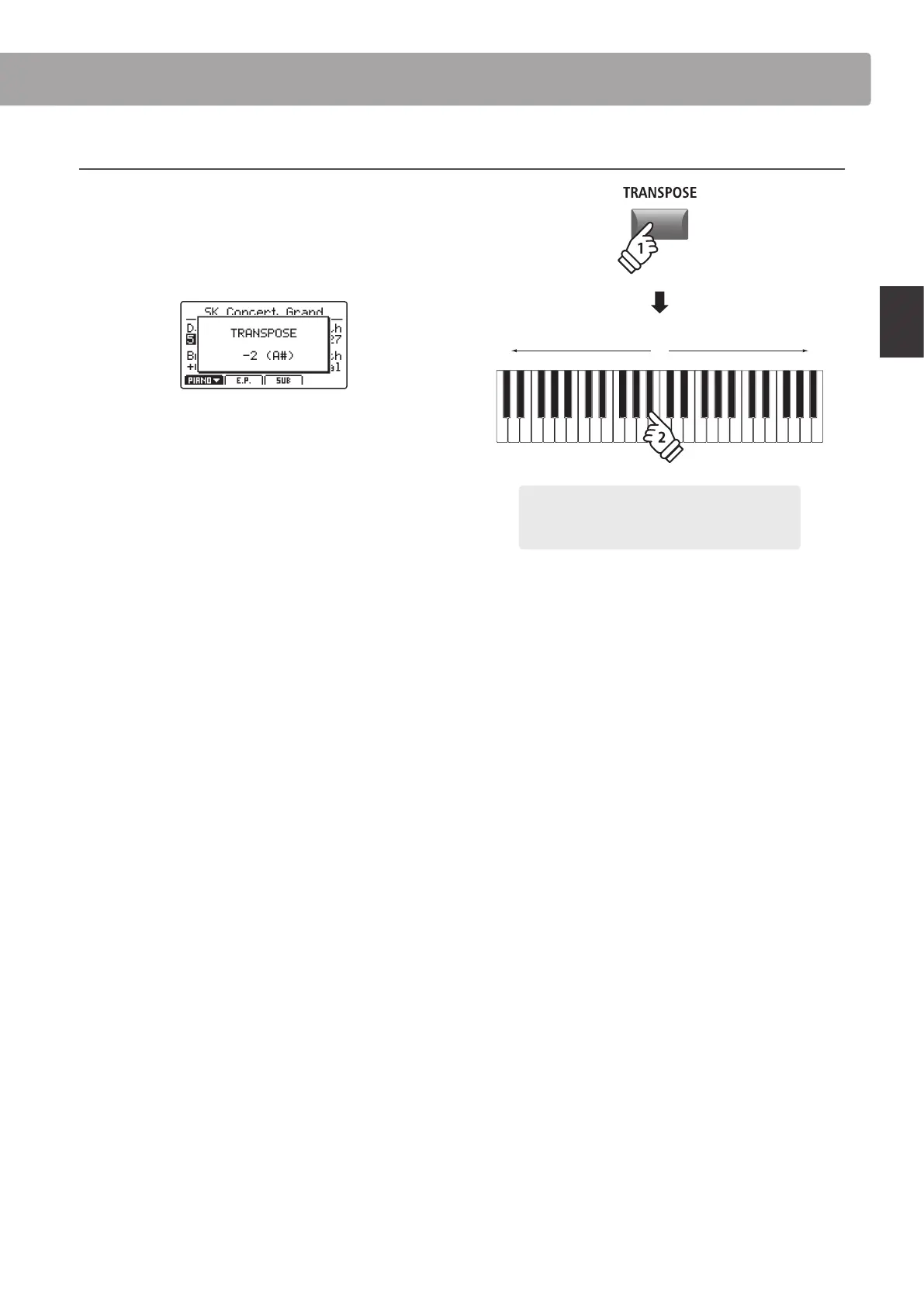 tones, press and hold the TRANSPOSE button, then