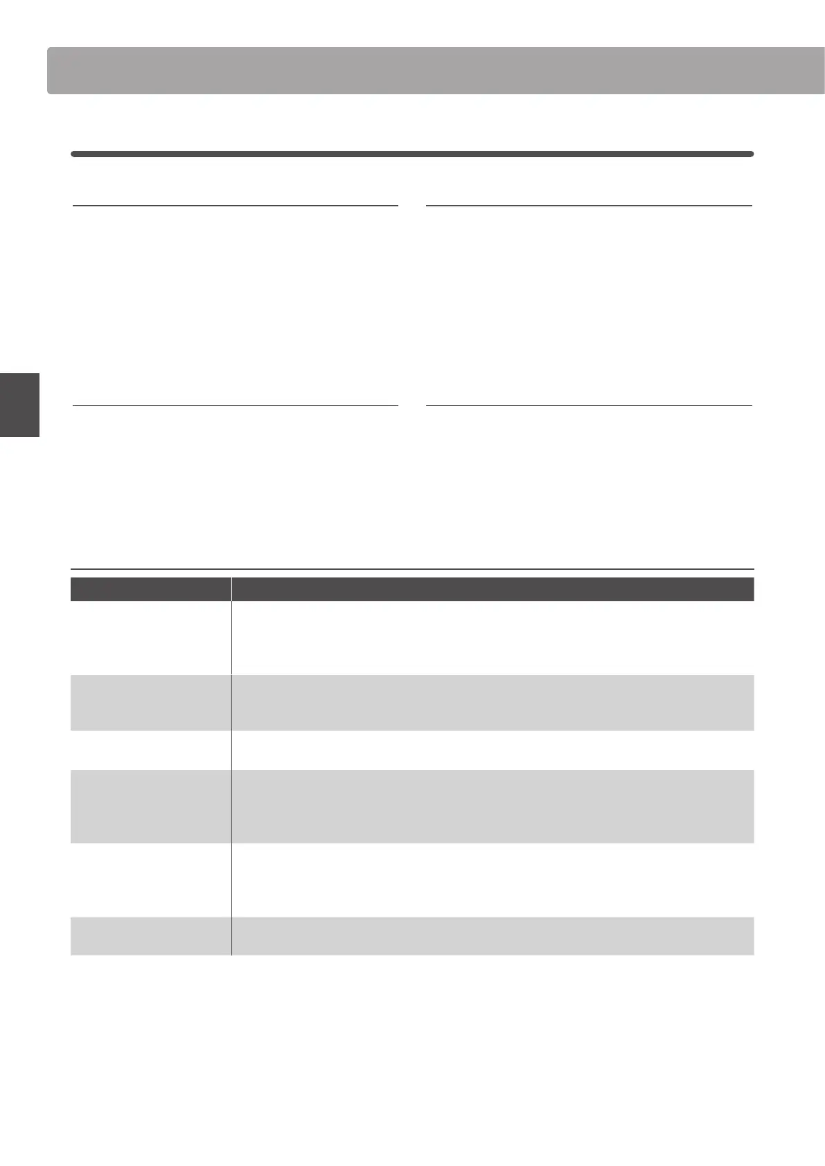 EDIT Menu parameters (PIANO, E.PIANO, SUB)