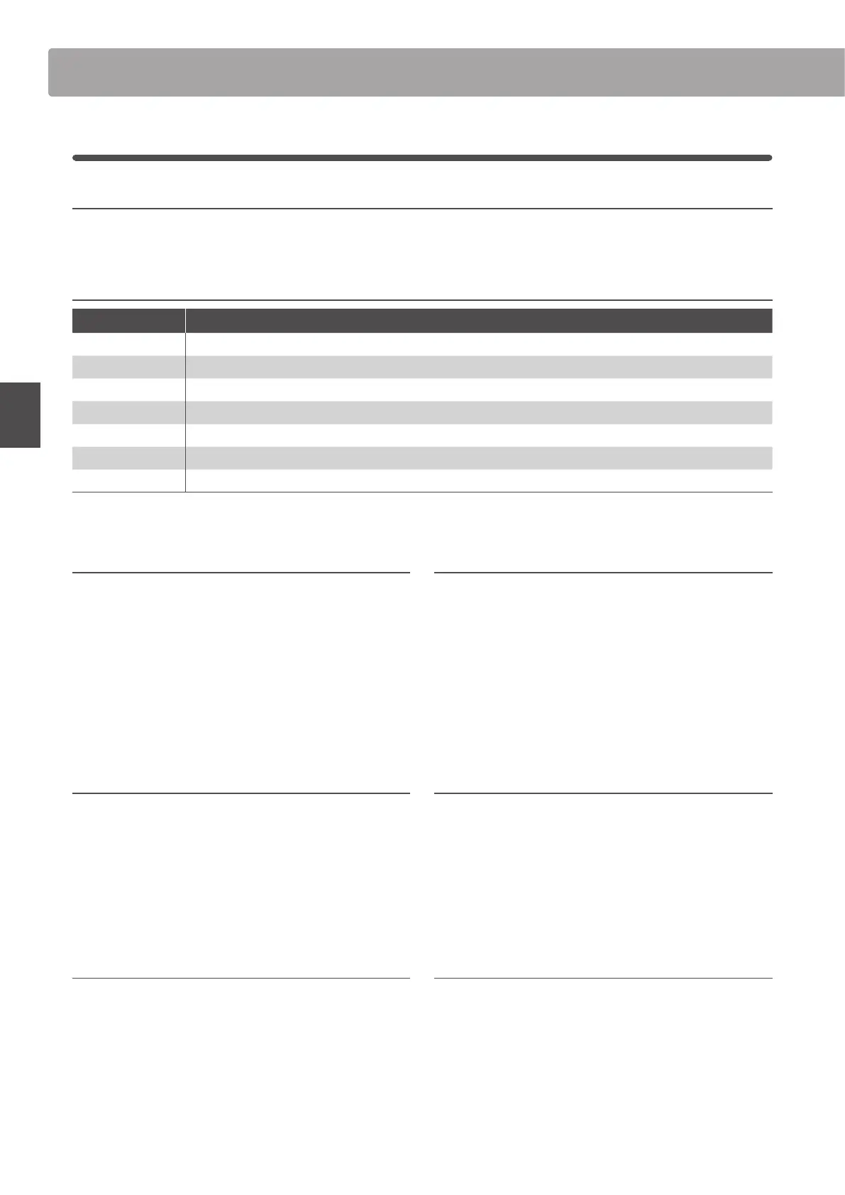 EDIT Menu parameters (PIANO, E.PIANO, SUB)