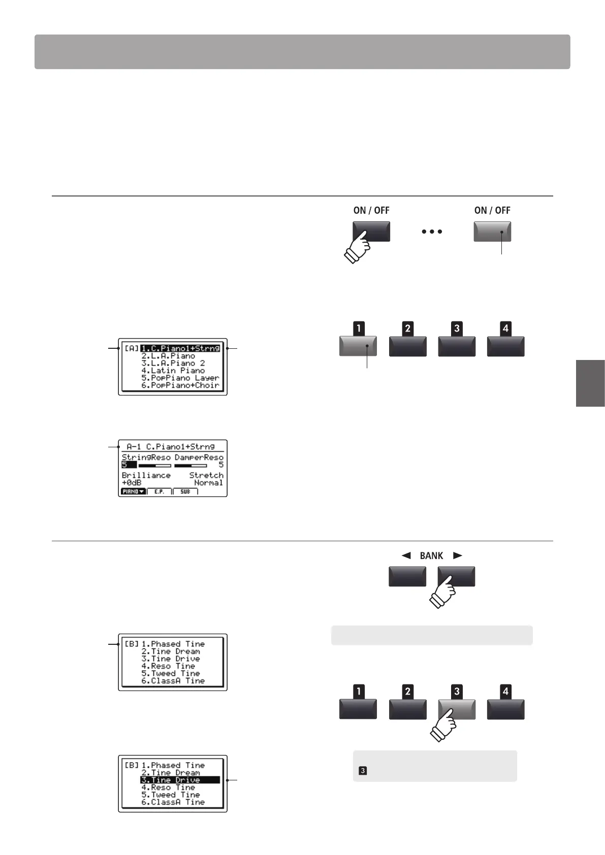 button. SETUPs are numbered 1~8, and arranged in 26 banks A~Z, allowing for a total of 208 individual memories.