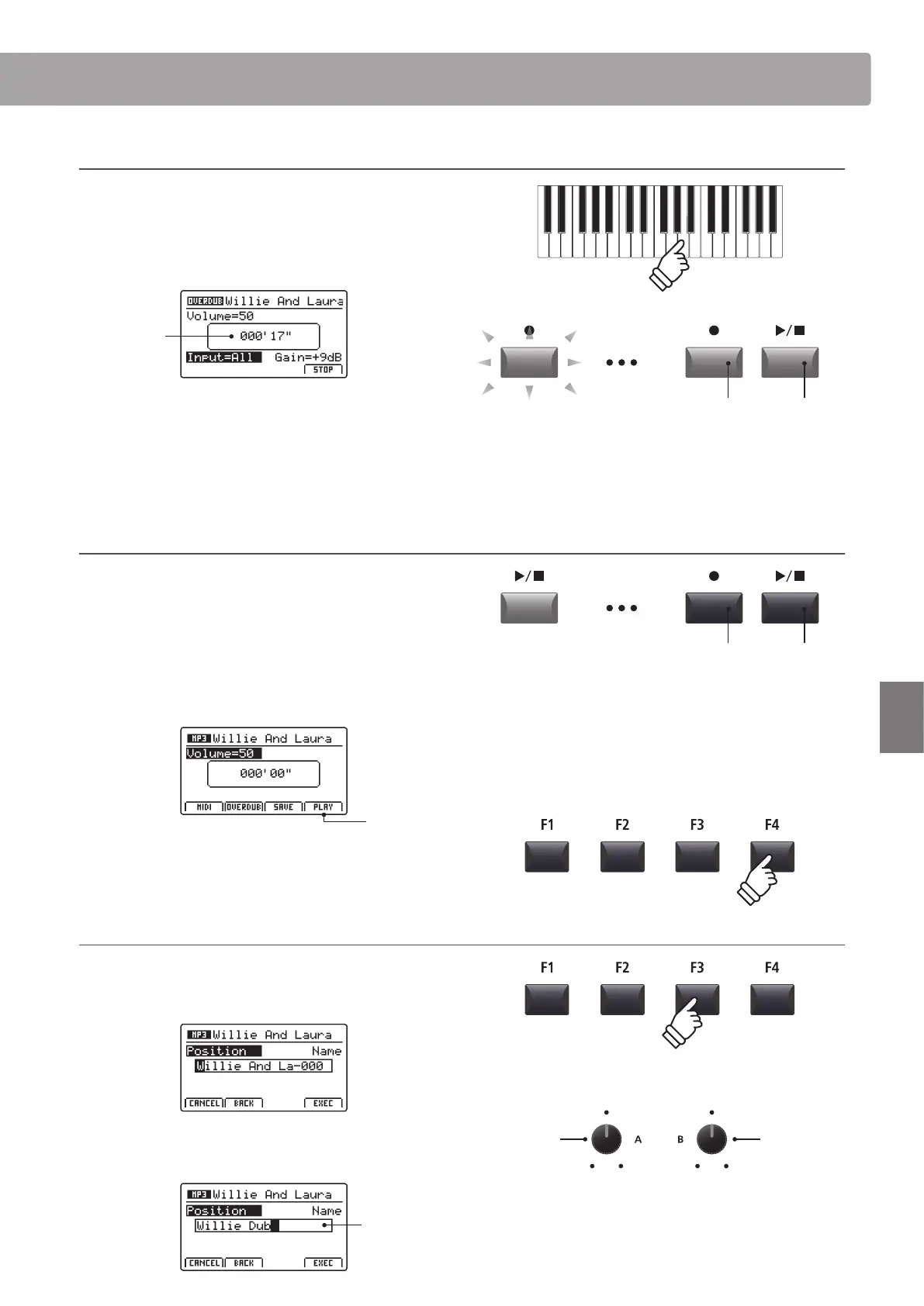 * The F4 function button (STOP) can also be used to stop overdubbing.