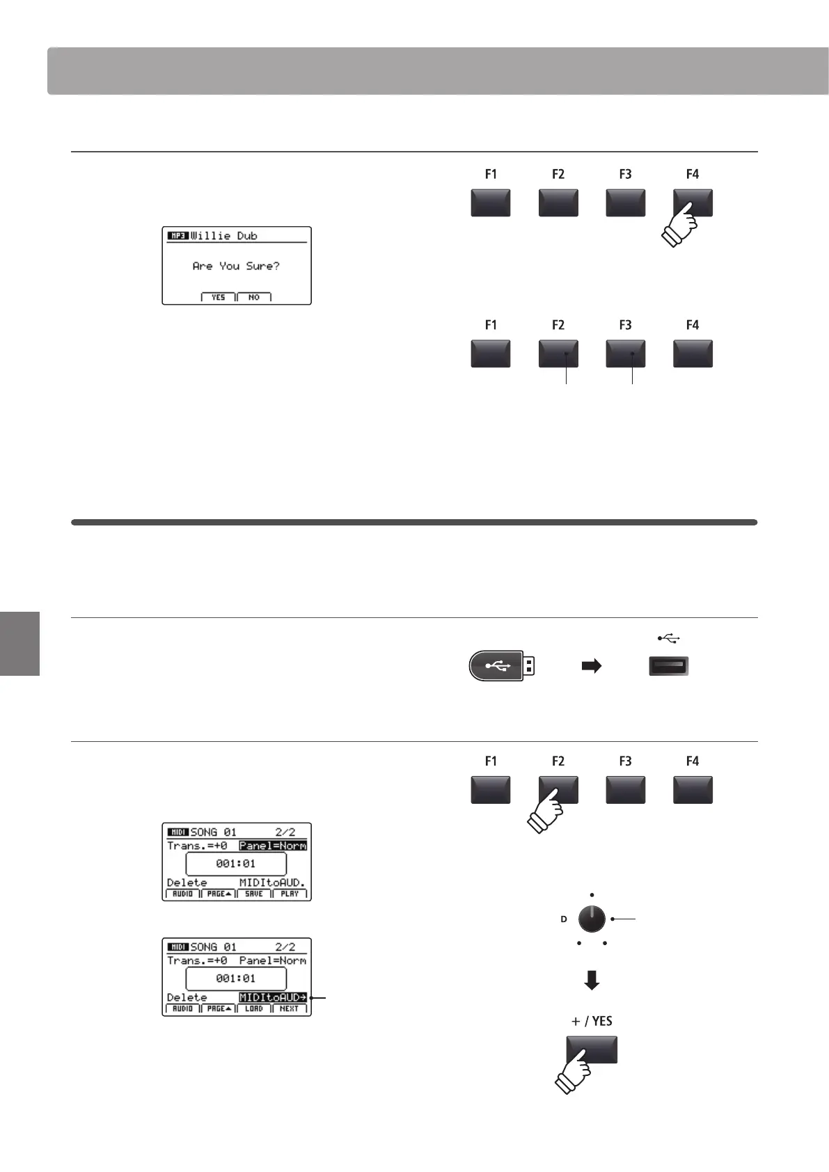 This function allows recorder songs stored in internal memory to be played back and saved (converted) as an audio