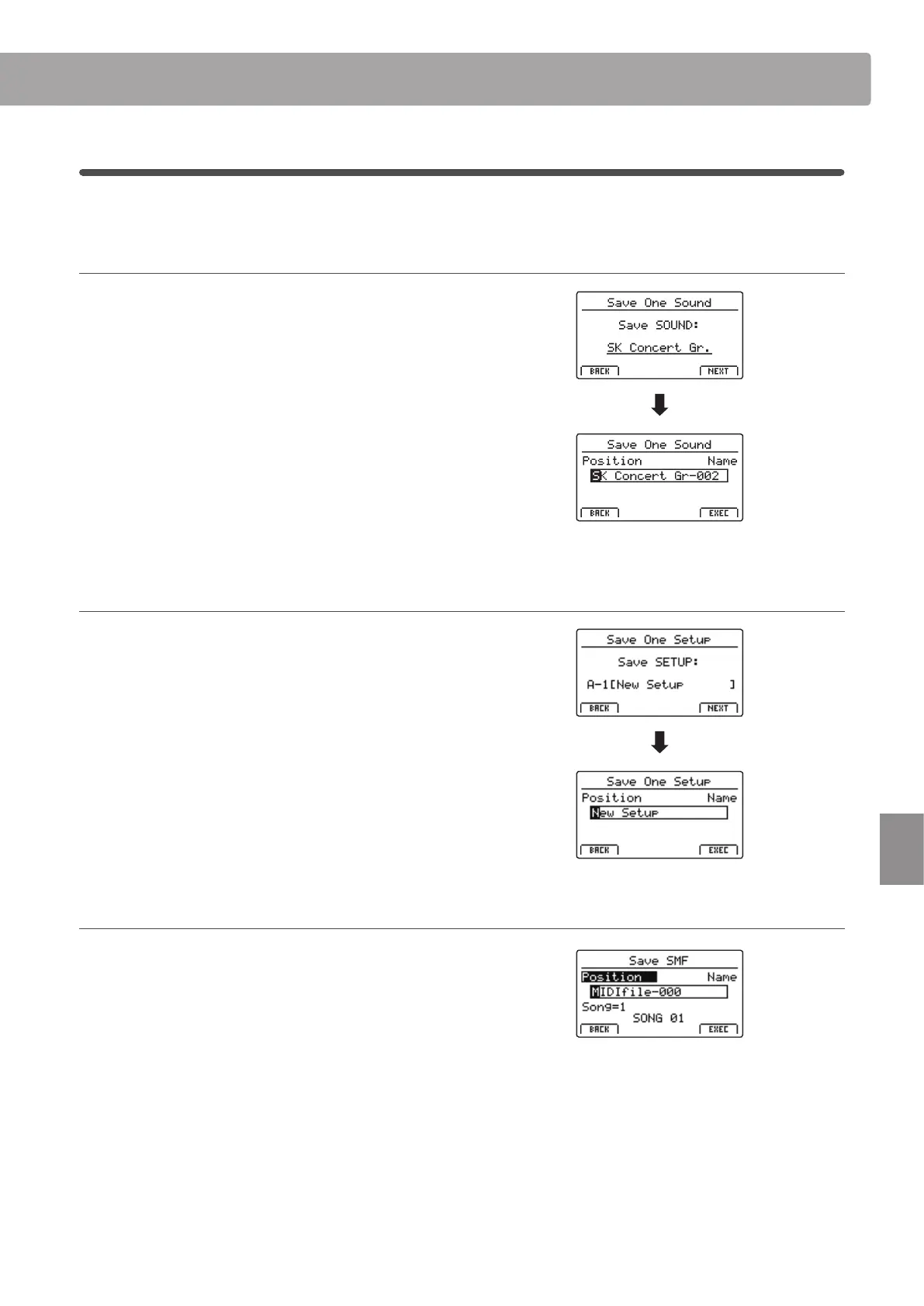 Enter a name for the saved SOUND le using control knobs A