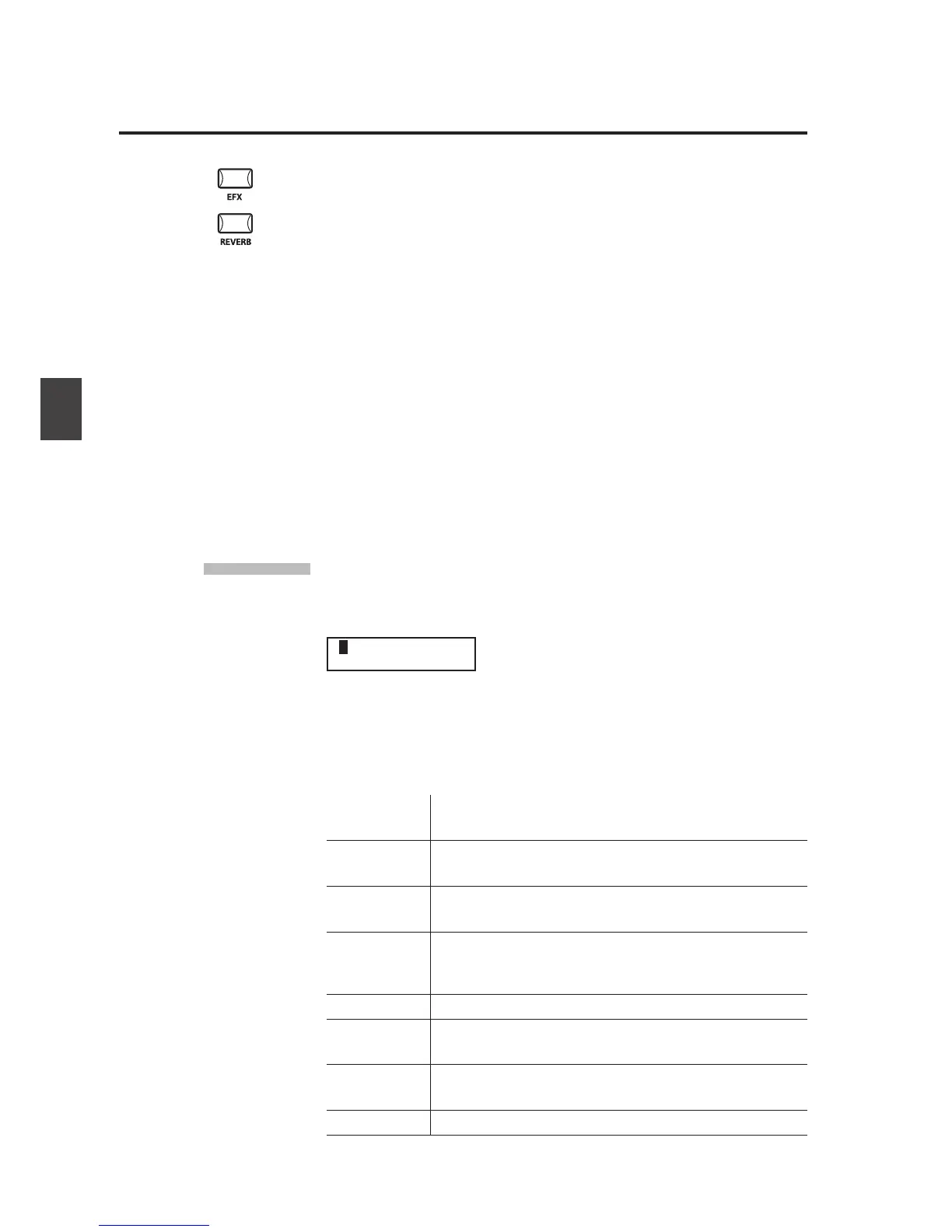 There are 7 REVERB types and 23 dierent EFX types to choose from. MP6