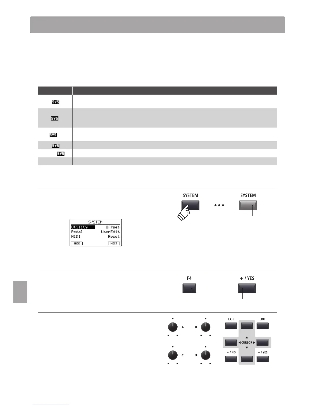 are grouped into six categories: Utility, Pedal, MIDI, Offset, User Edit, and Reset. SYSTEM parameters will be