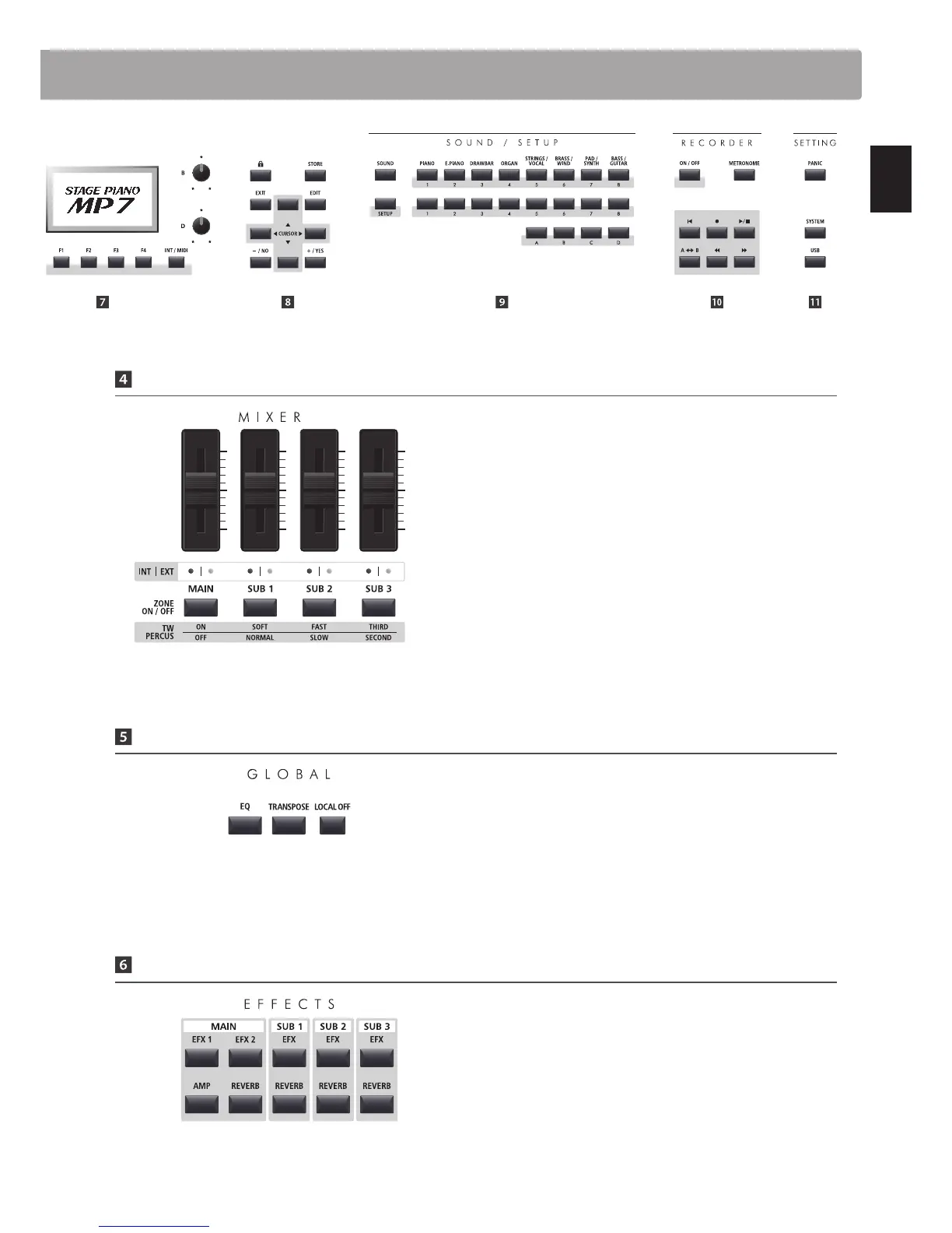 These buttons turn the eects for each zone ON or OFF. The