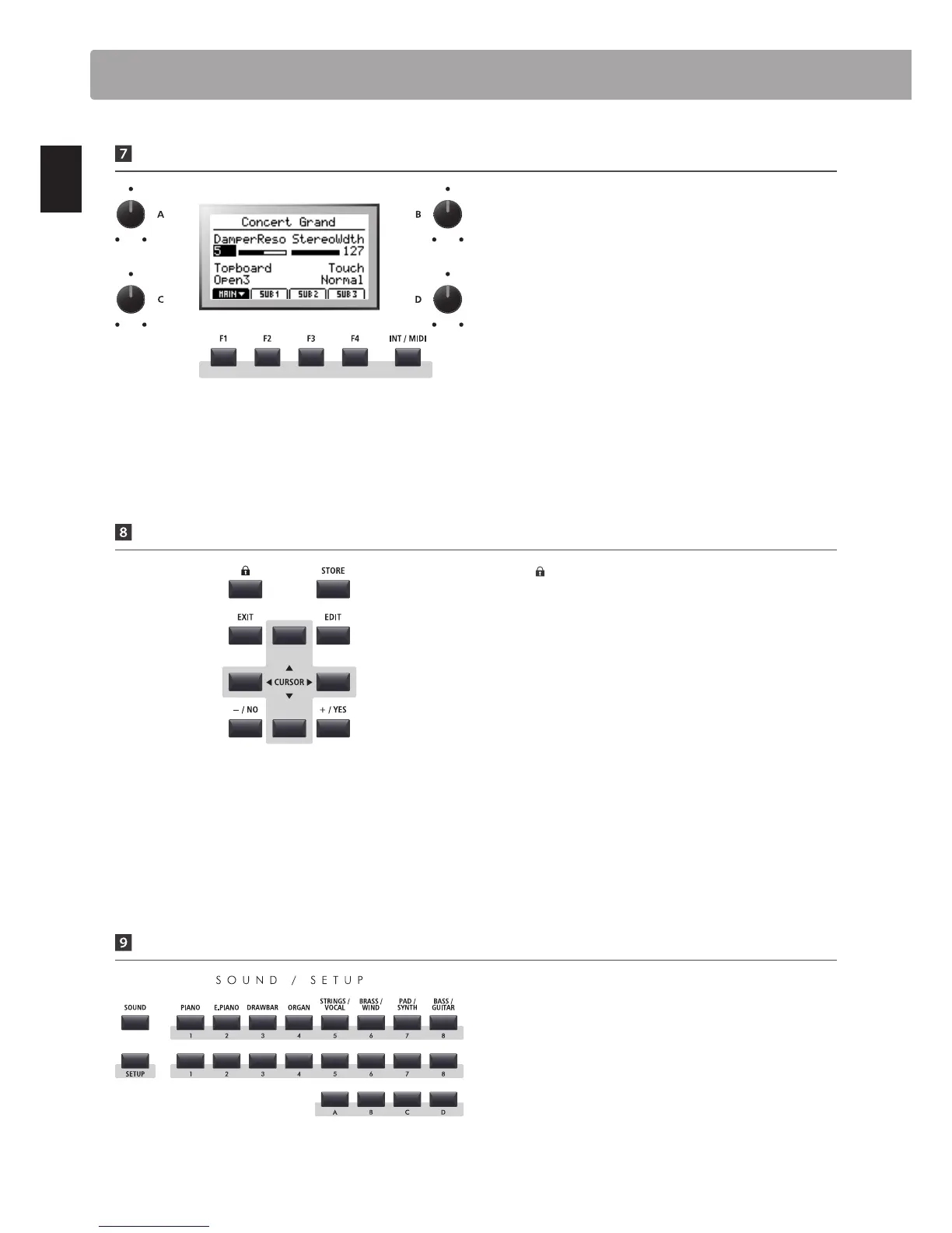 on the right will select the instrument’s 256 internal sounds.