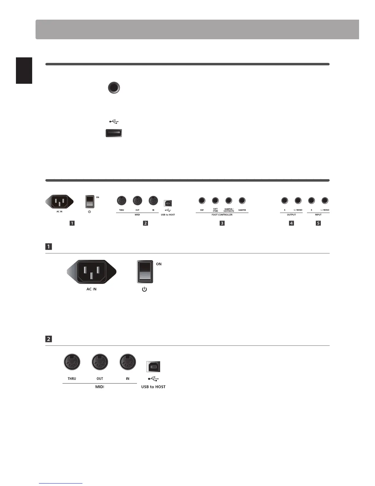 * The instrument’s USB MIDI port and MIDI IN/OUT jacks can be connected