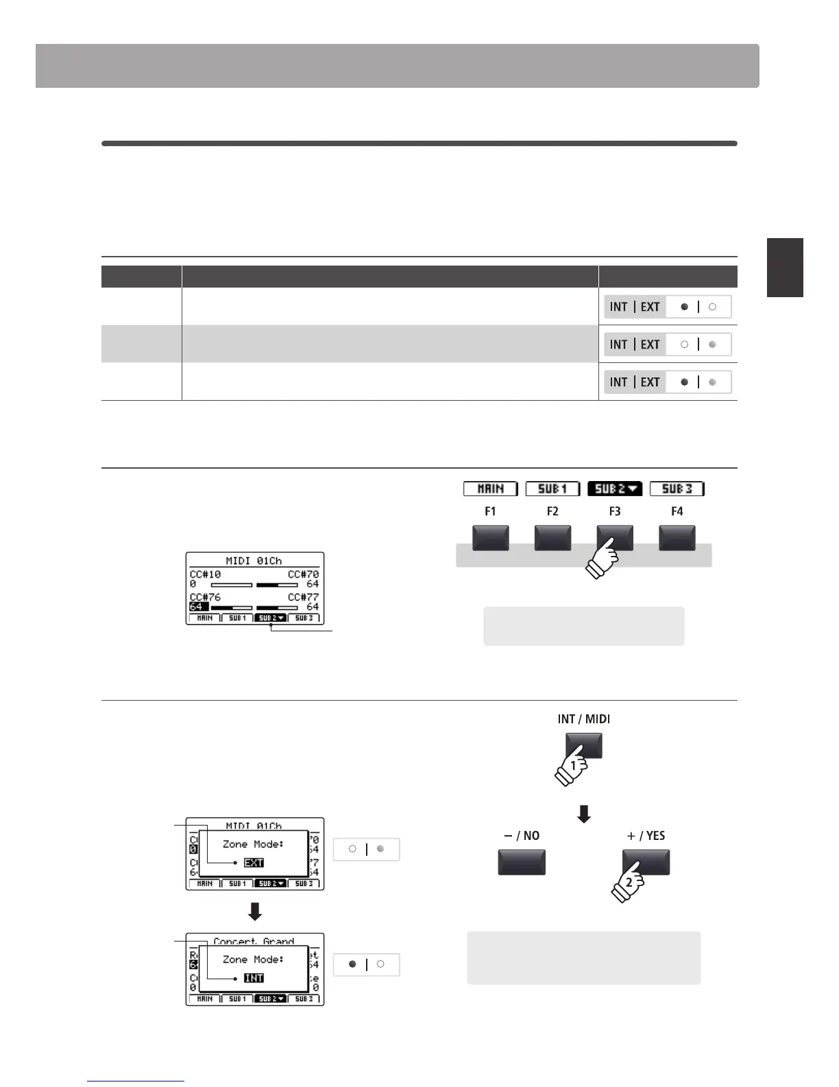 (INT), external MIDI devices (EXT), or both internal and external simultaneously (BOTH). This page will outline the