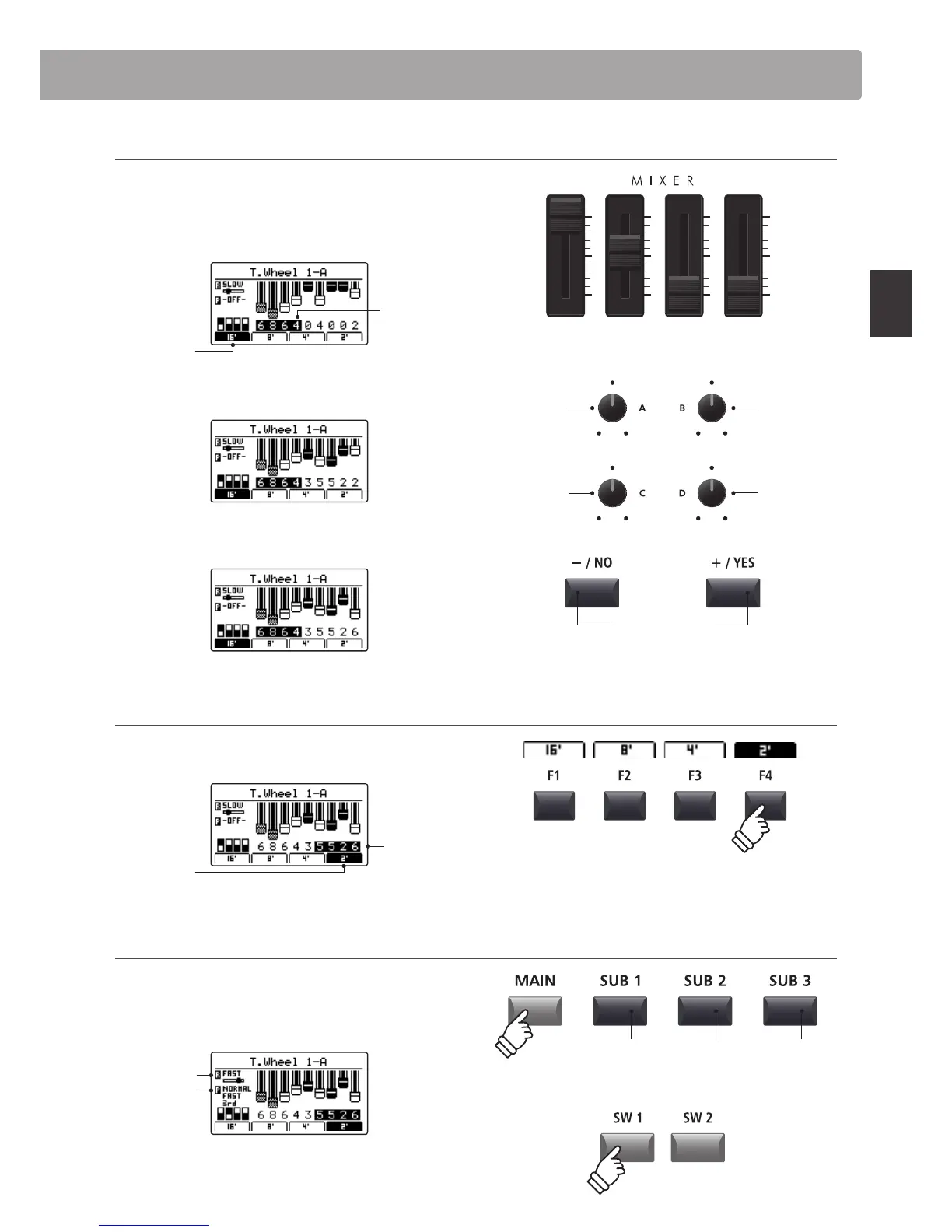 Press the F1~F4 function buttons to select which four drawbars