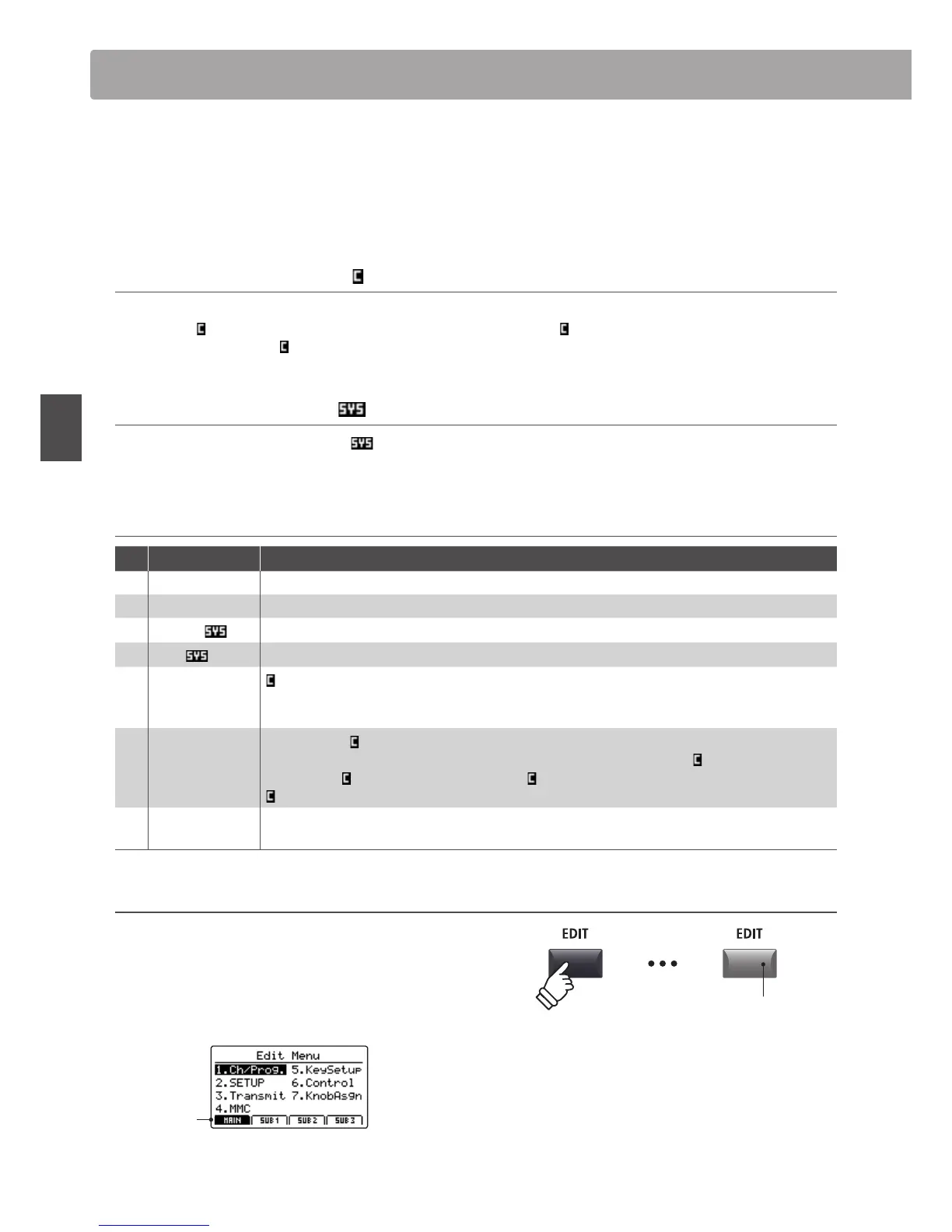 The EDIT menu can also be used to adjust parameters for zones in EXT mode. As with the INT mode EDIT menus,