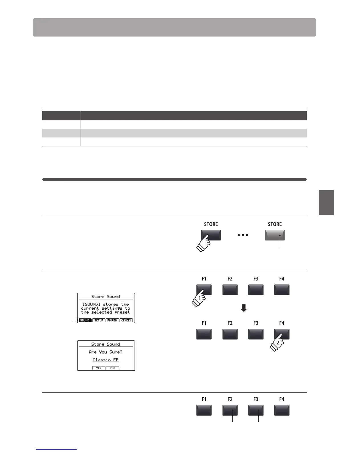The STORE button has three dierent functions: to store individual sounds (SOUND), to store the entire panel