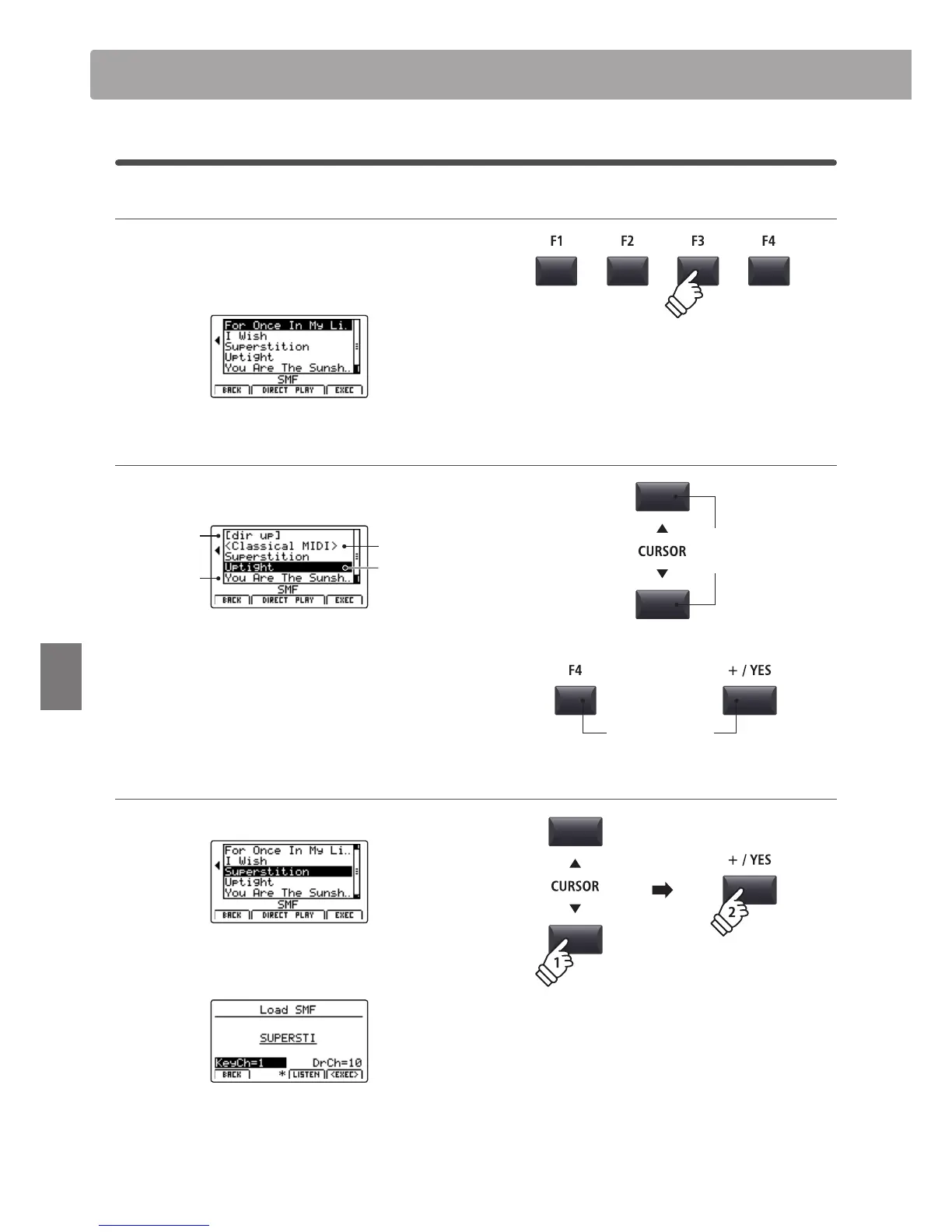 buttons to select the desired MIDI le.