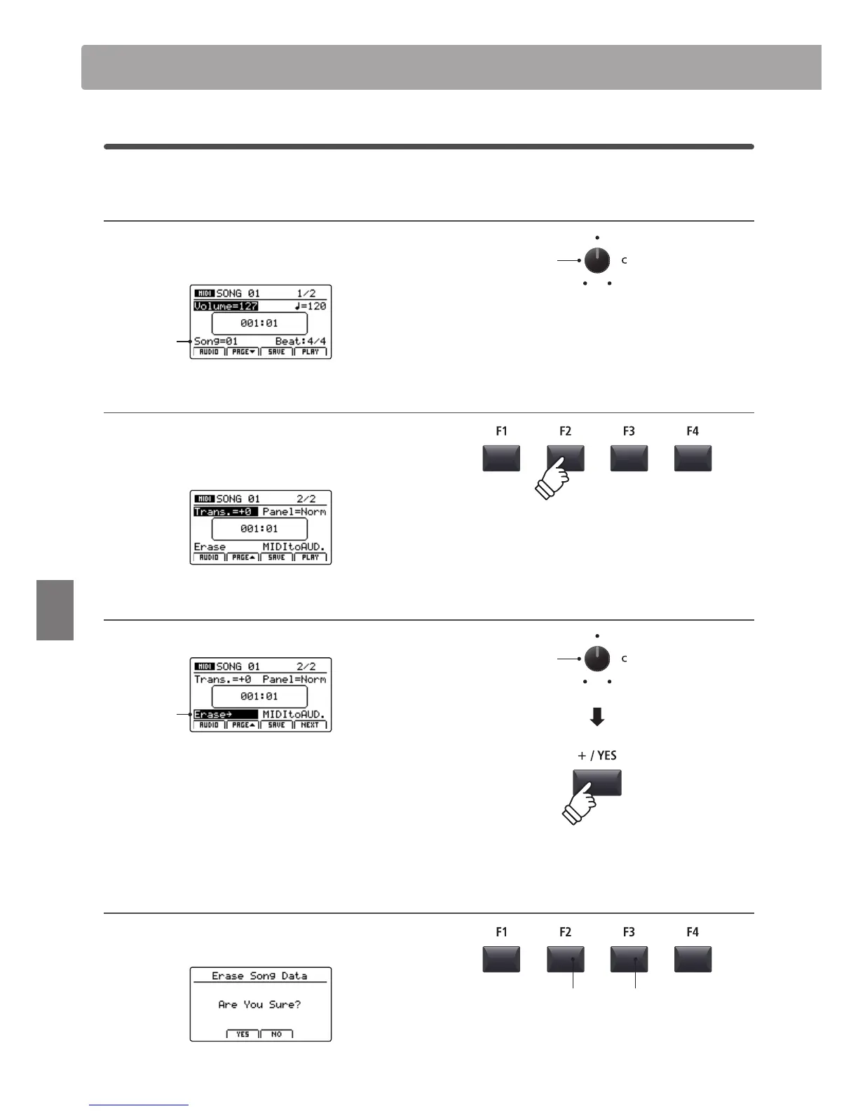 Press the F2 button (YES) to conrm the Erase Song operation,