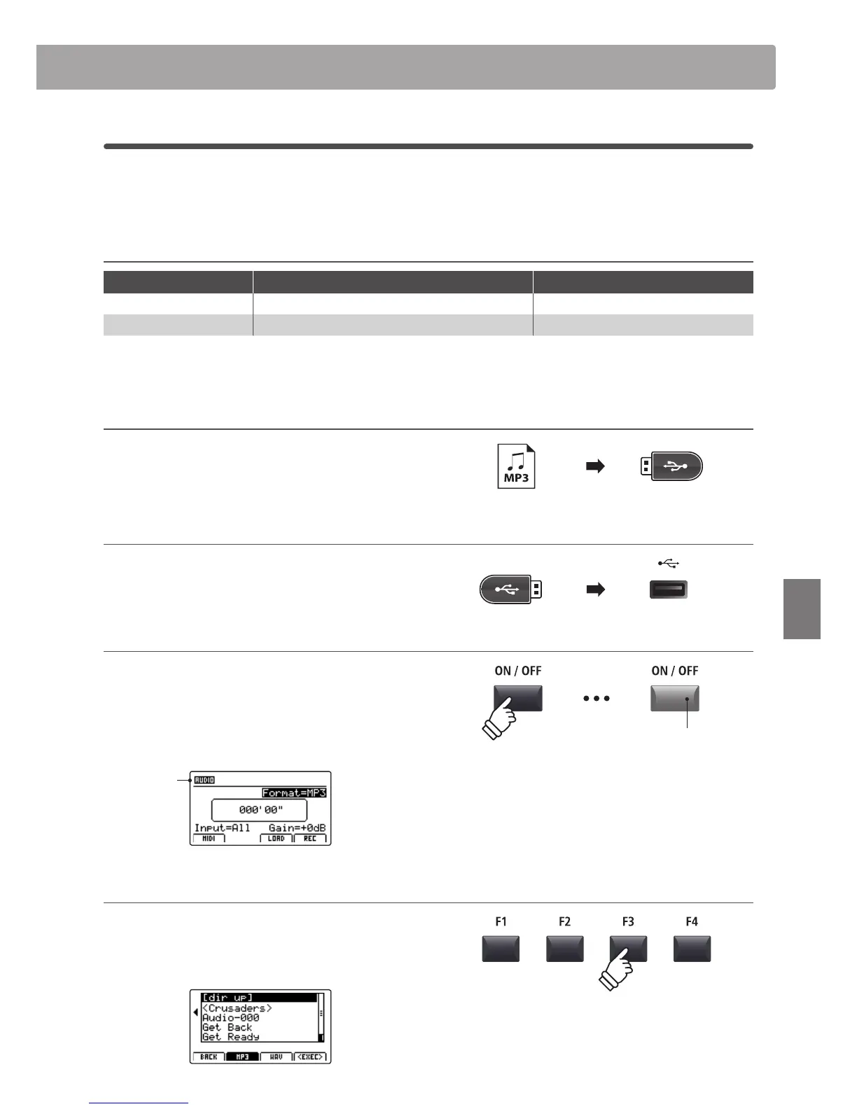 * USB devices should be formatted to use the ‘FAT’ or ‘FAT32’ lesystems.