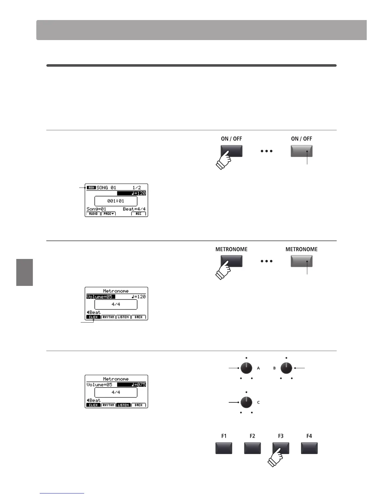 * The metronome tempo can be adjusted within the range of 30-300 bpm