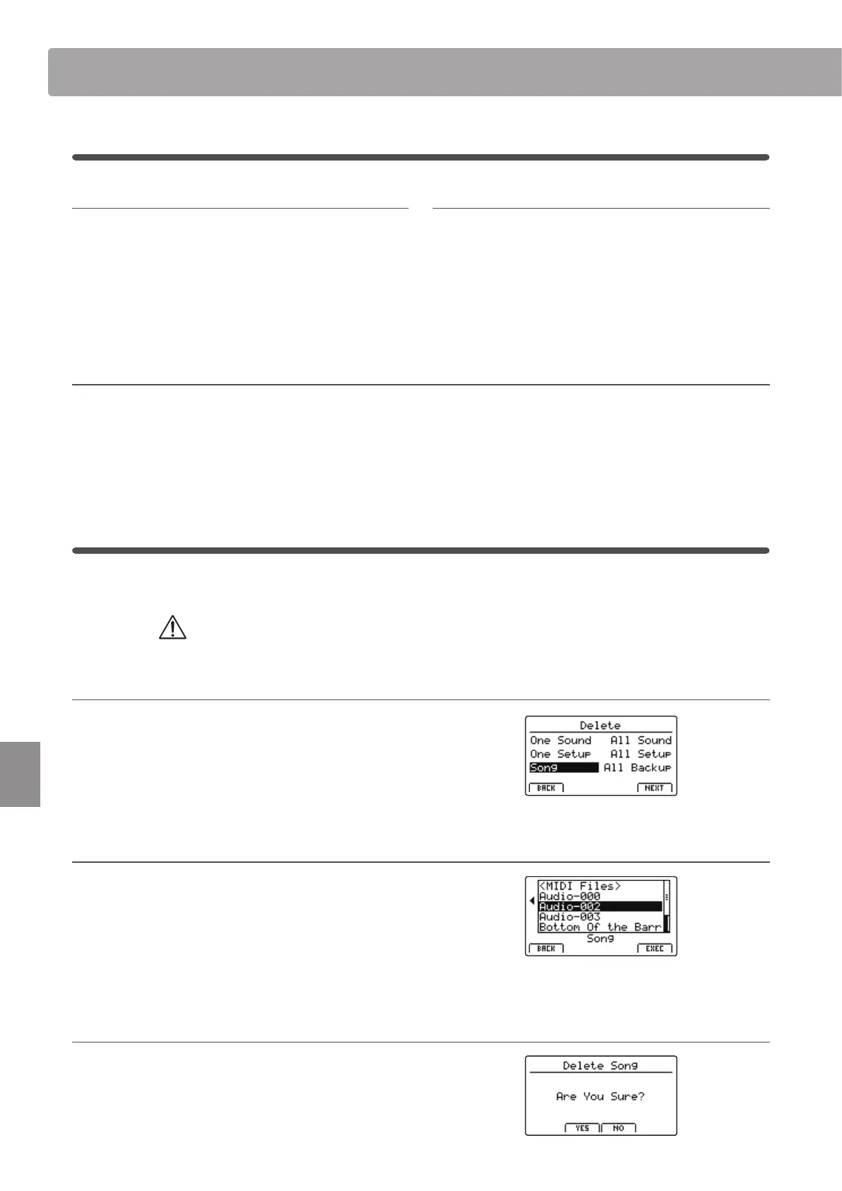 Delete functions will erase data from the connected USB memory device.