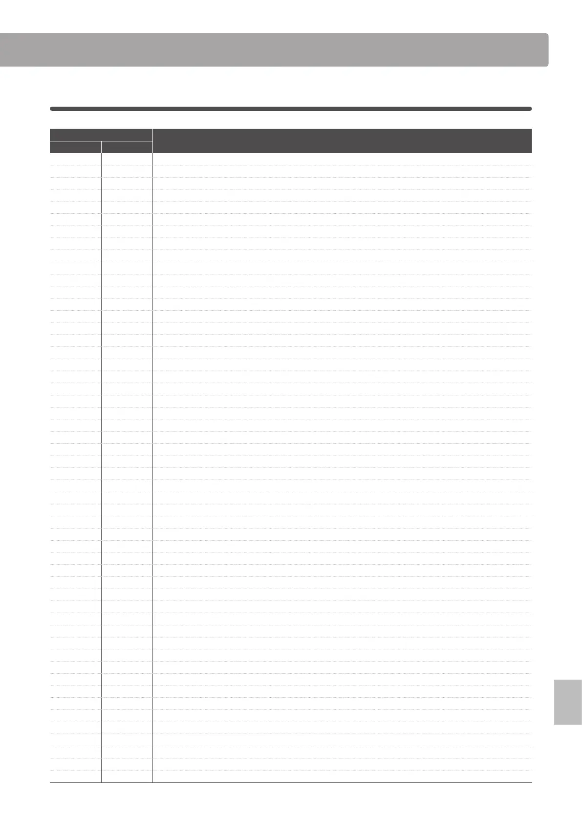 Control Change Number (CC#) Table