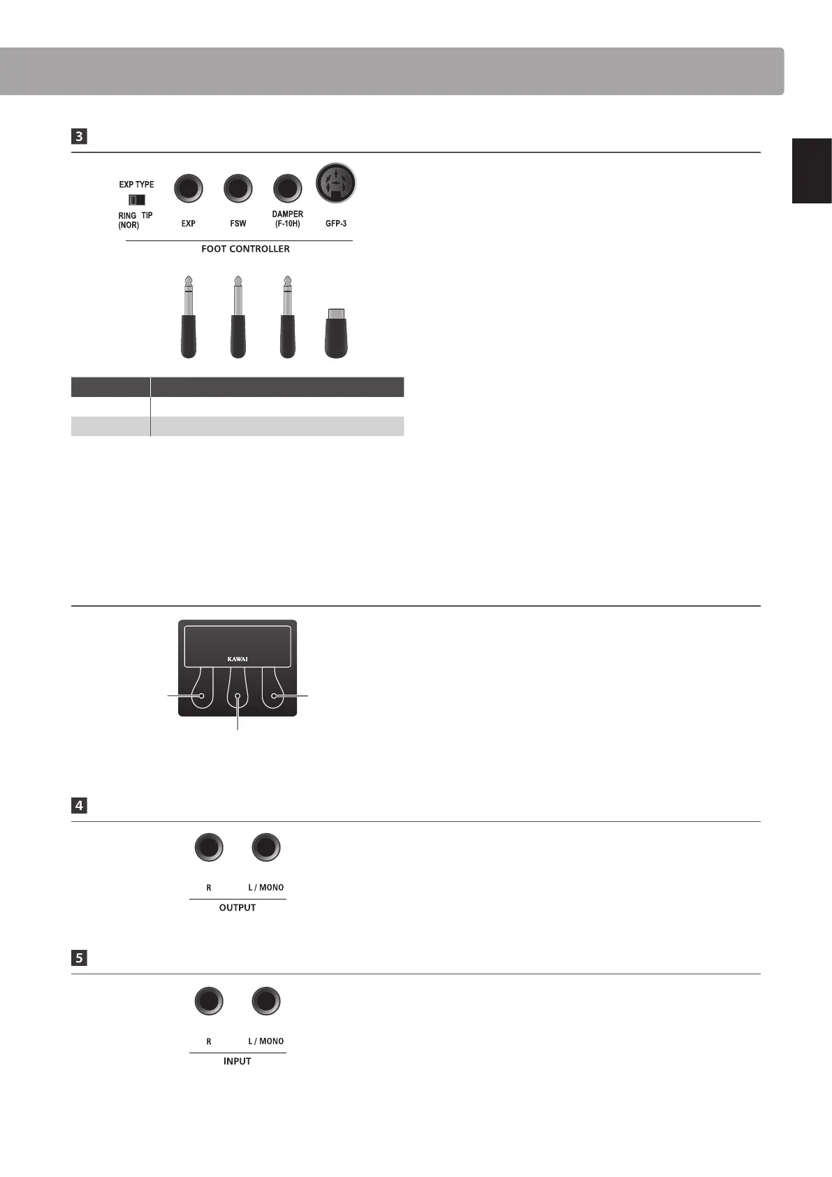 This jack is used to connect the optional Kawai GFP-3 triple