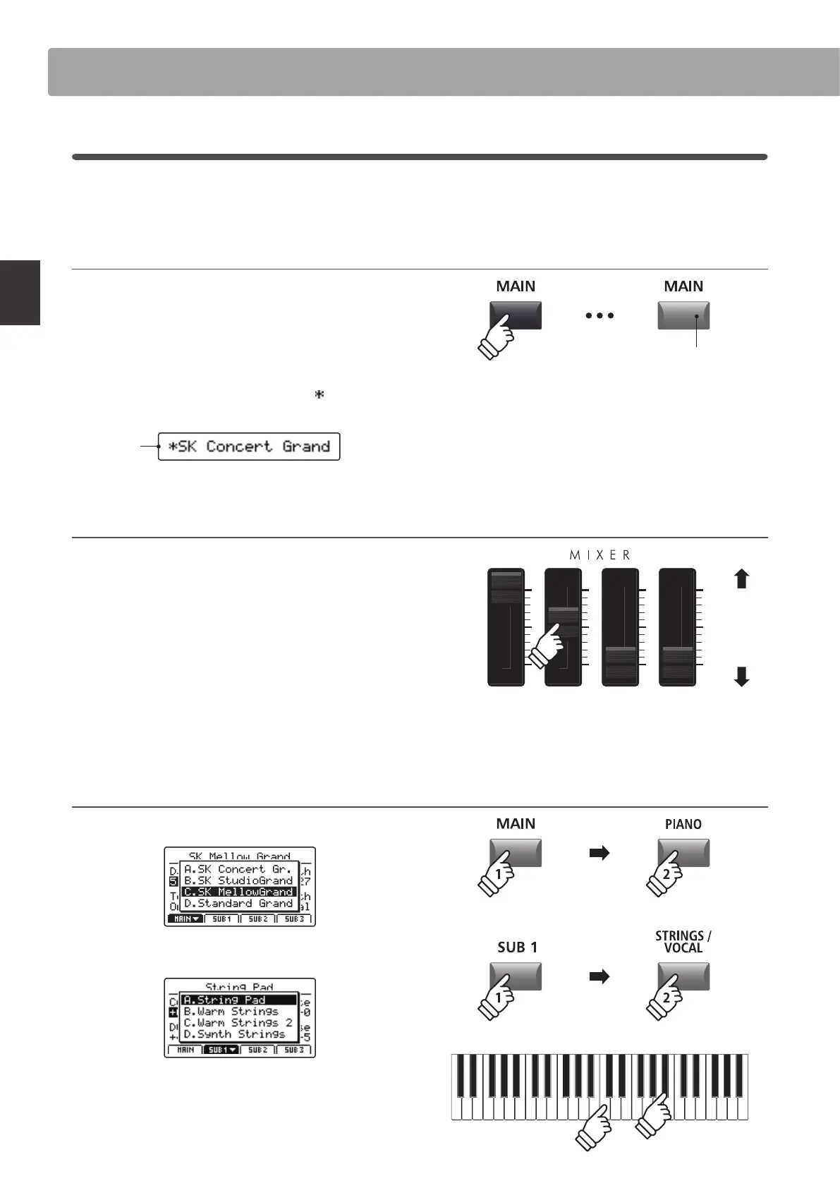 Next, turn the SUB1 zone ON, and select a strings sound.