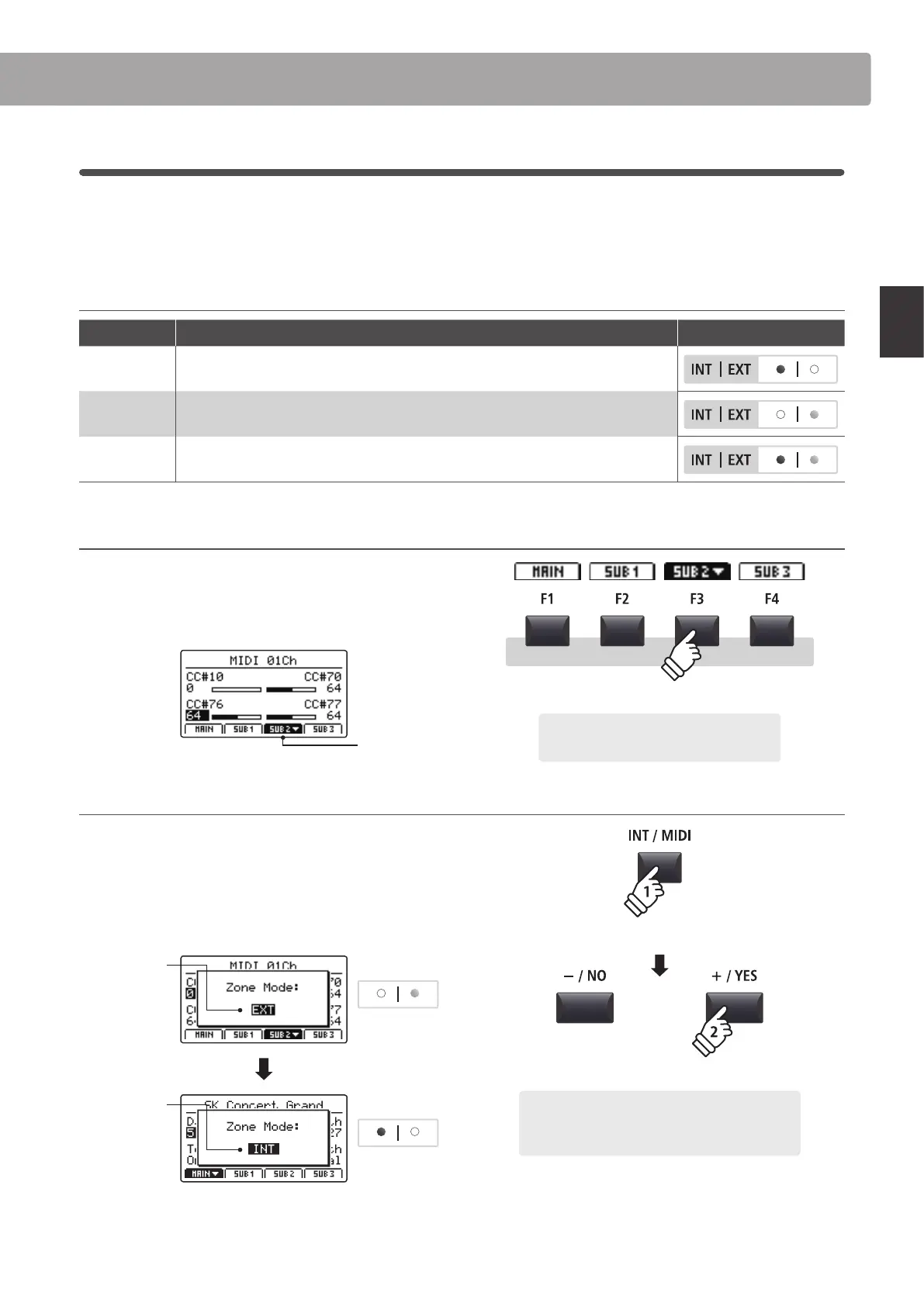 (INT), external MIDI devices (EXT), or both internal and external simultaneously (BOTH). This page will outline the