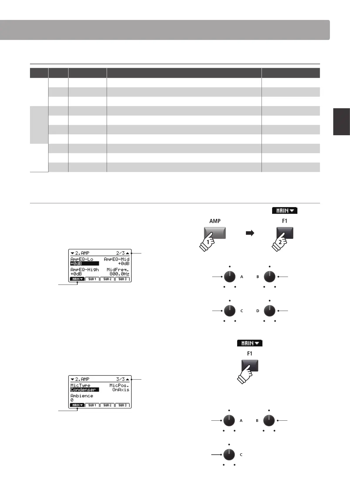C Amp EQ Hi Adjusts the gain of the amplier’s high frequencies. –10 dB ~ +10 dB