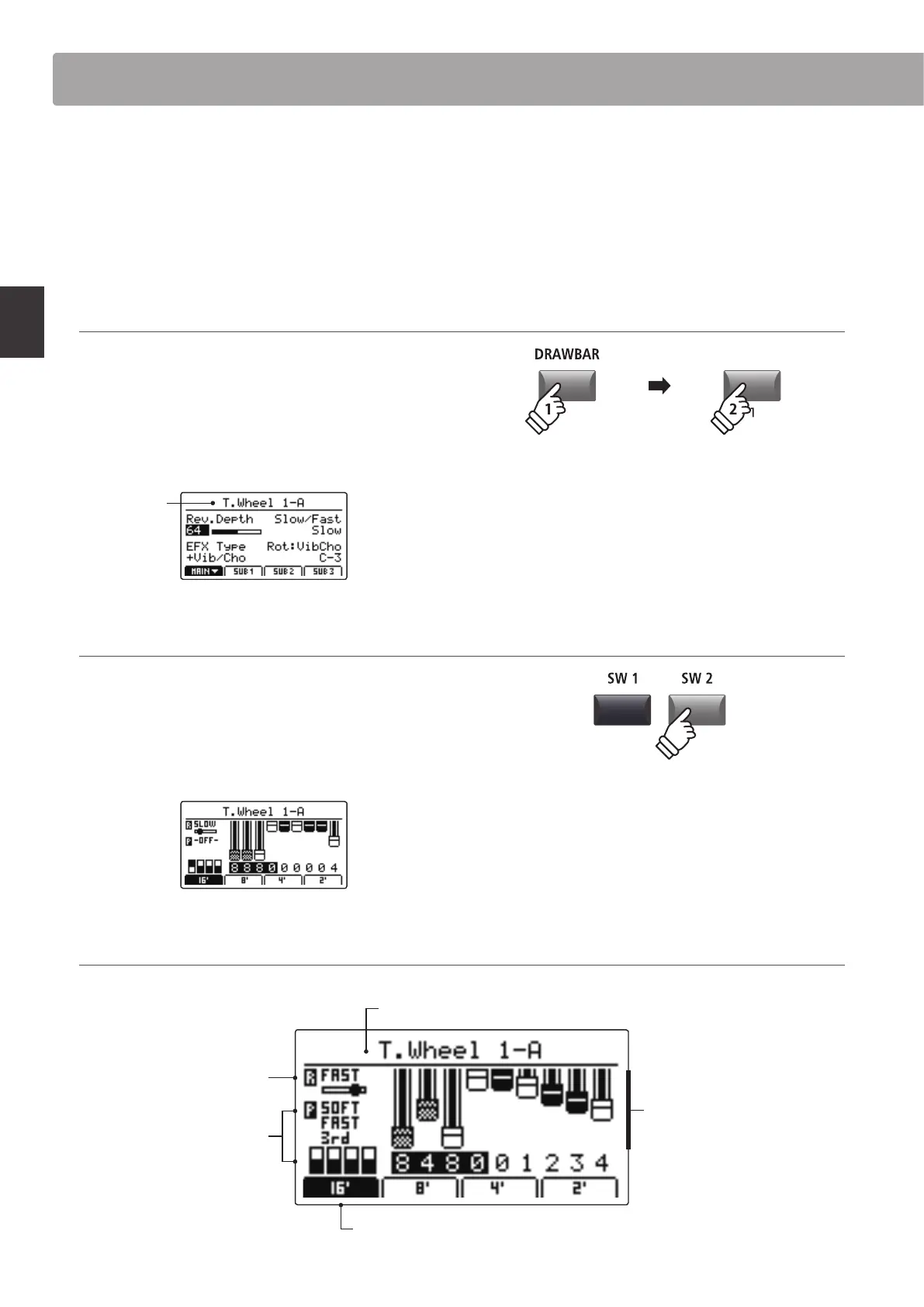 for the MAIN zone, and activated when selecting the DRAWBAR sound category and 1, 2, or 3 sub-categories.