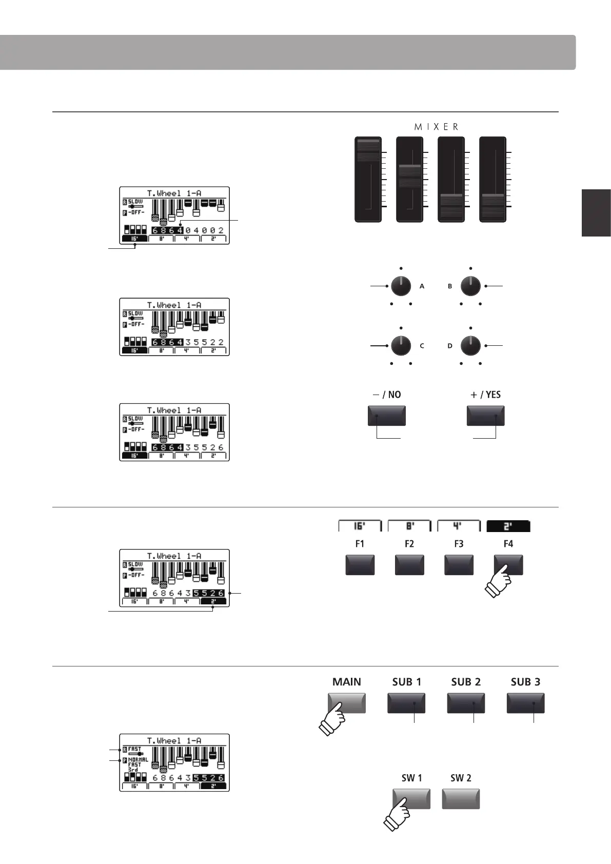 Press the F1~F4 function buttons to select which four drawbars