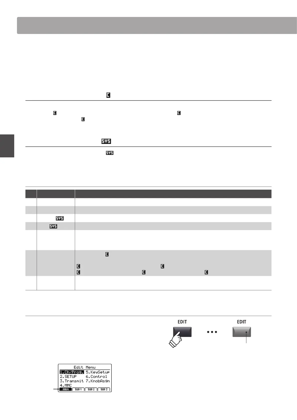 The EDIT menu can also be used to adjust parameters for zones in EXT mode. As with the INT mode EDIT menus, the