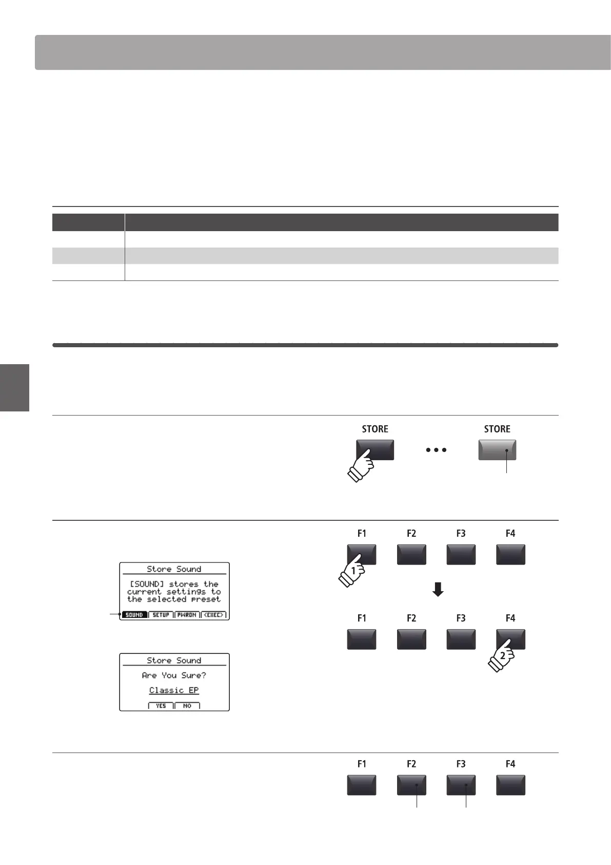 The STORE button has three dierent functions: to store individual sounds (SOUND), to store the entire panel